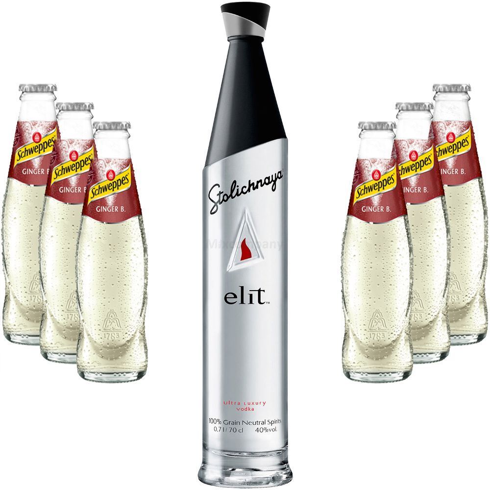 Moscow Mule Set - Stolichnaya Elit Vodka 0,7l 700ml (40% Vol) + 6x Schweppes Gi