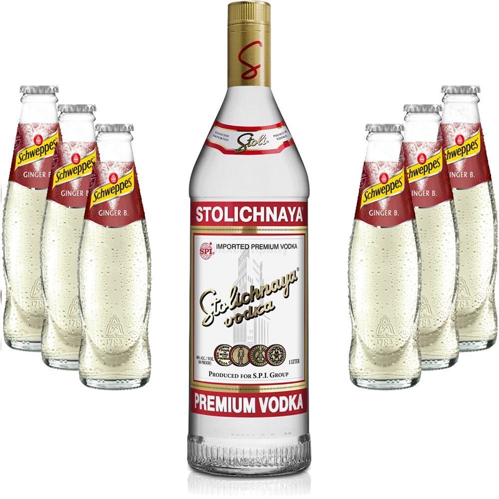 Moscow Mule Set - Stolichnaya Vodka 1L (40% Vol) + 6x Schweppes Ginger Beer 200