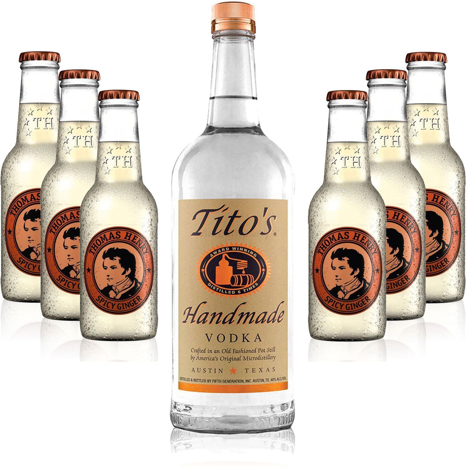 Moscow Mule Set - Titos Handmade Vodka 0,7l 700ml (40% Vol) + 6x Thomas Henry S