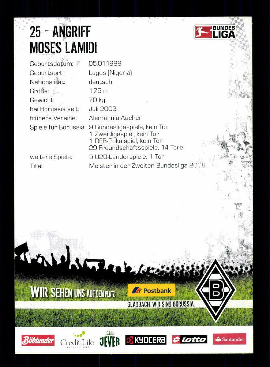 Moses Lamidi Autogrammkarte Borussia Mönchengladbach 2009-10 Original