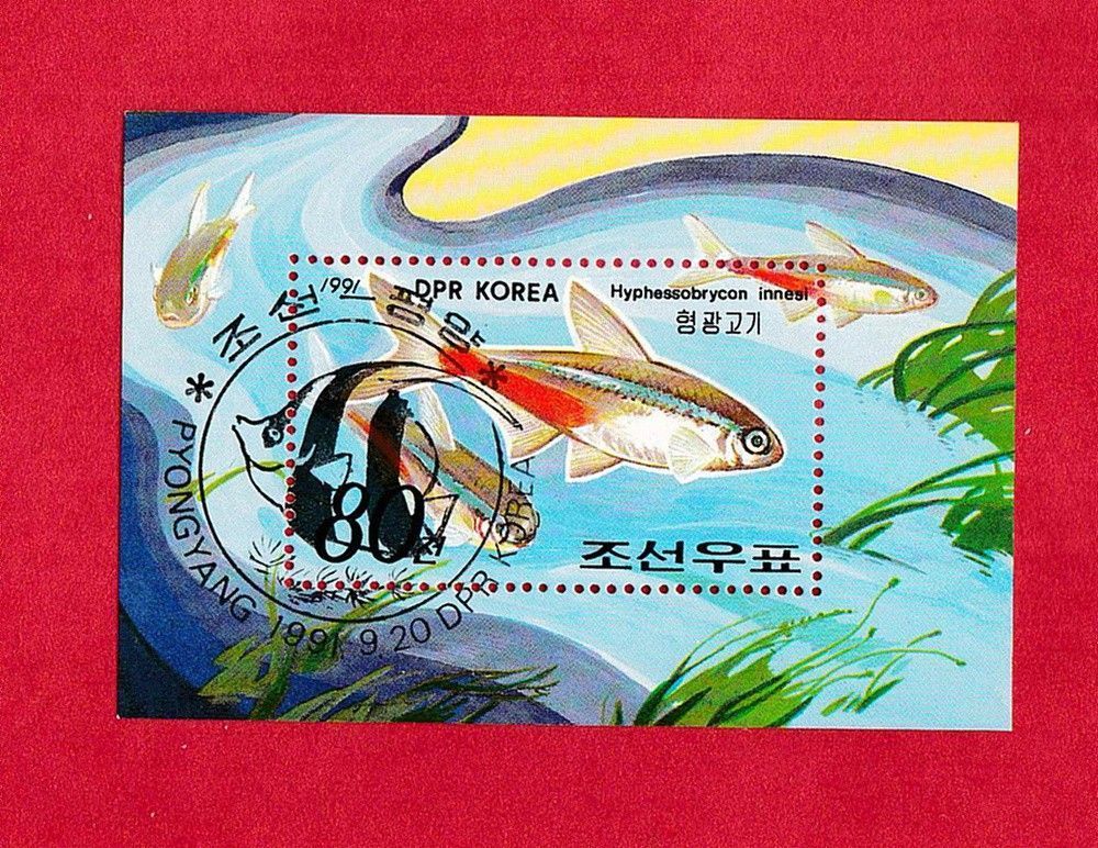 siehe Abbildung , sehr gute Erhaltung - Motiv Fisch (Hyphessobrycon innesi aus Nordkorea o