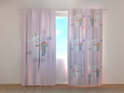 Fotogardine bunte Katze, Fotovorhang mit Motiv, Digitaldruck, Gardine, Maßanfertigung