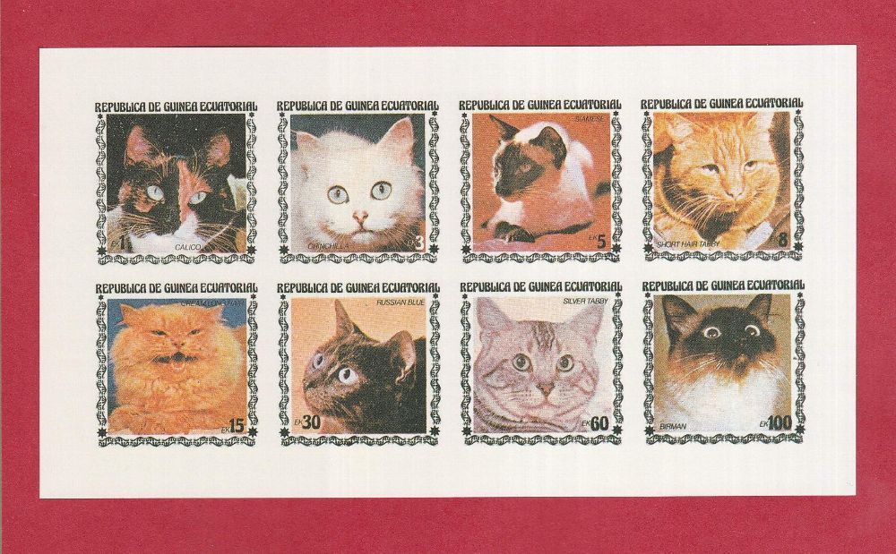siehe Abbildung, ---------- Motiv - Katzen ( Kleinbogen 8 versch. Marken, ungezähnt )