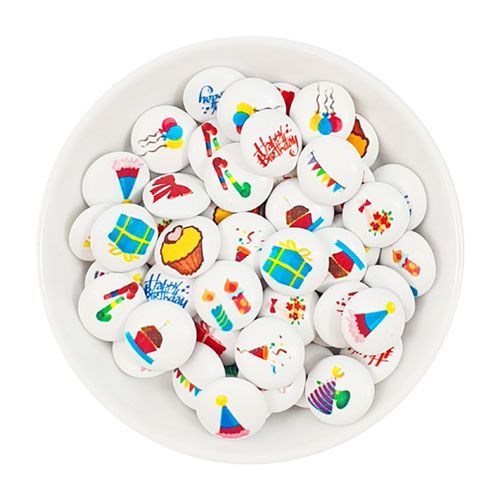 Für deine Tortendeko, Tischdekoration oder Give-Away´s kannst du diese tollen bedrucken Schokolinsen mit Geburtstagsmotiven verwenden.