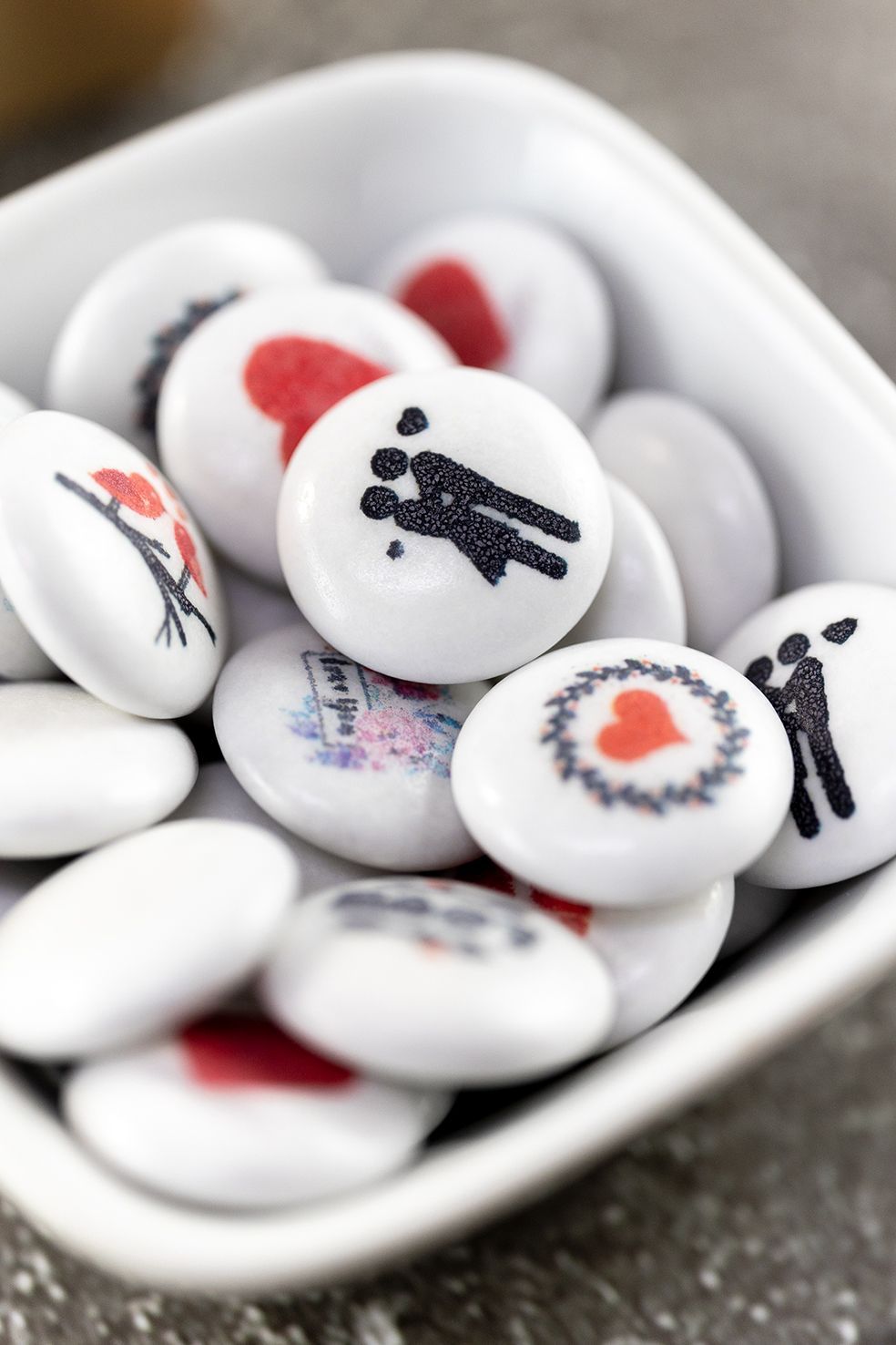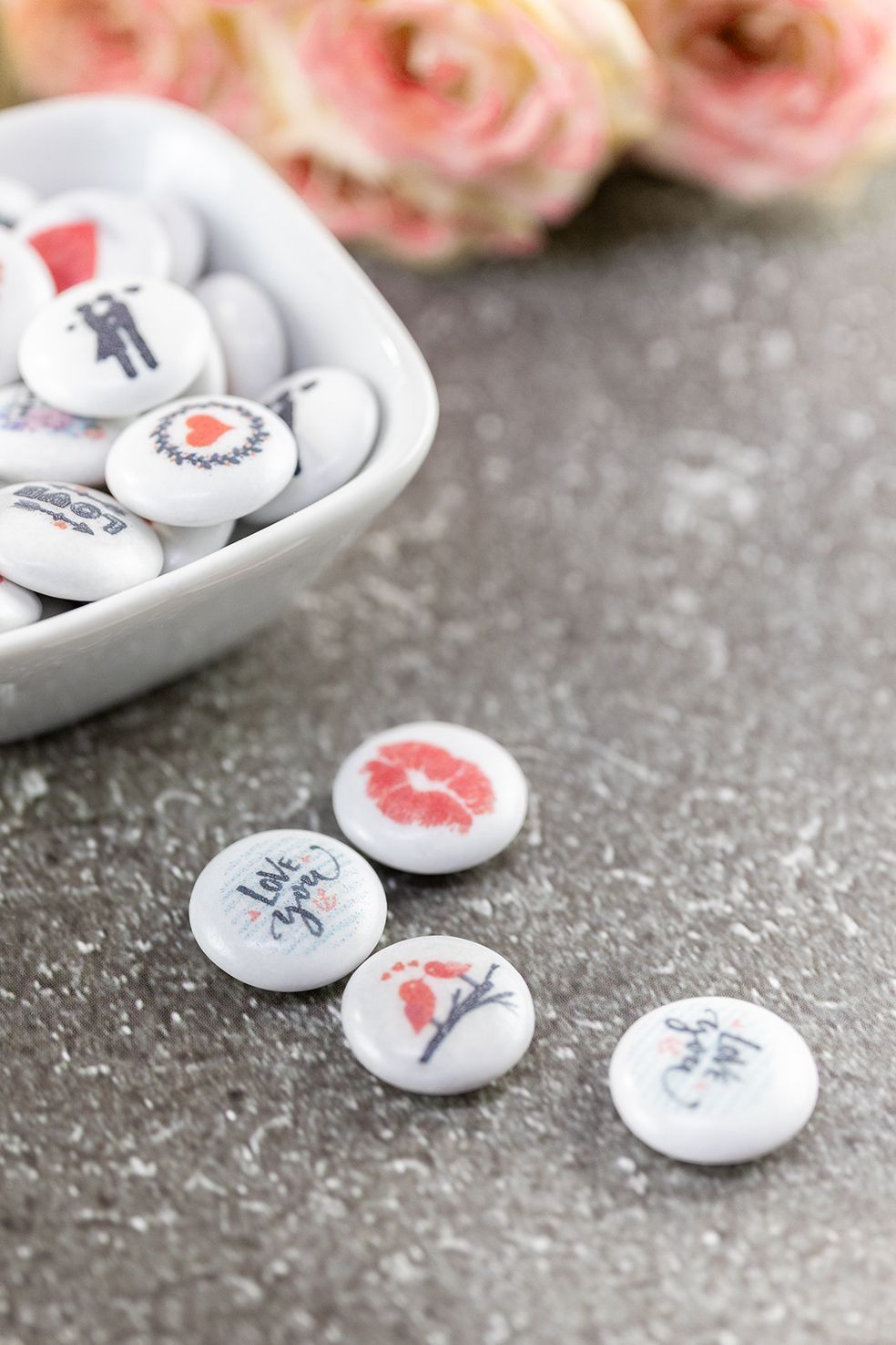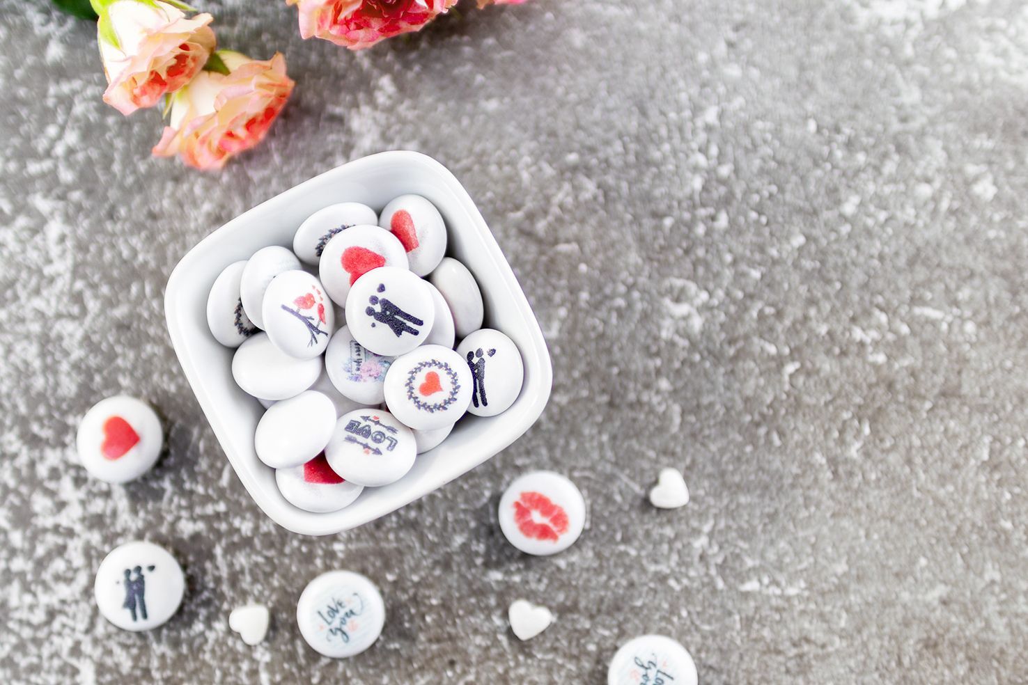 Liebevolles Naschen ist eine super Idee, finden wir. Bringen Sie mit diesen leckeren bedruckten Schokolinsen ein Lächeln auf die Gesichter Ihrer Lieben.