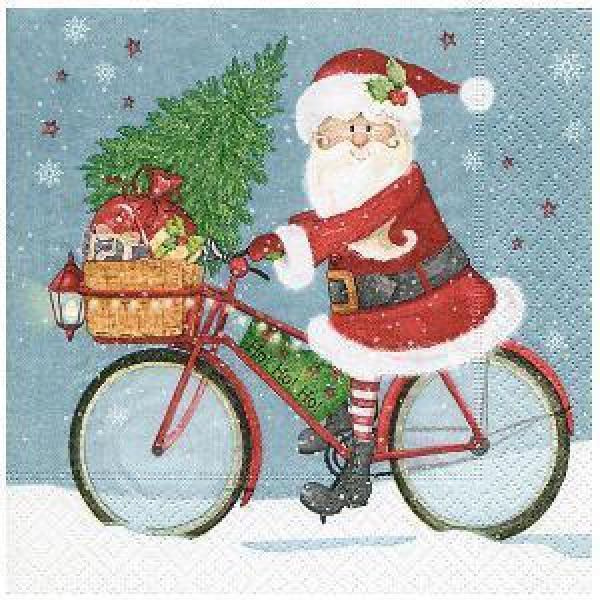 Motiv-Serviette Nikolaus auf einem Fahrrad