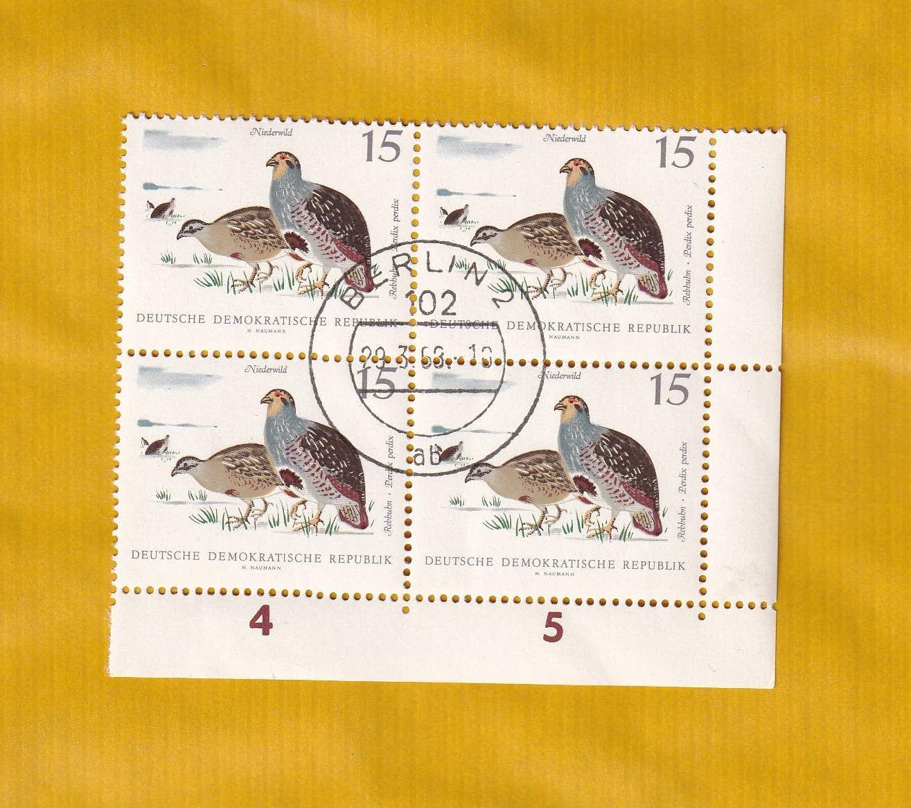 Motiv Vögel - Eckrandviererblock Rebhühner (Perdix perdix) o volle Gummierung
