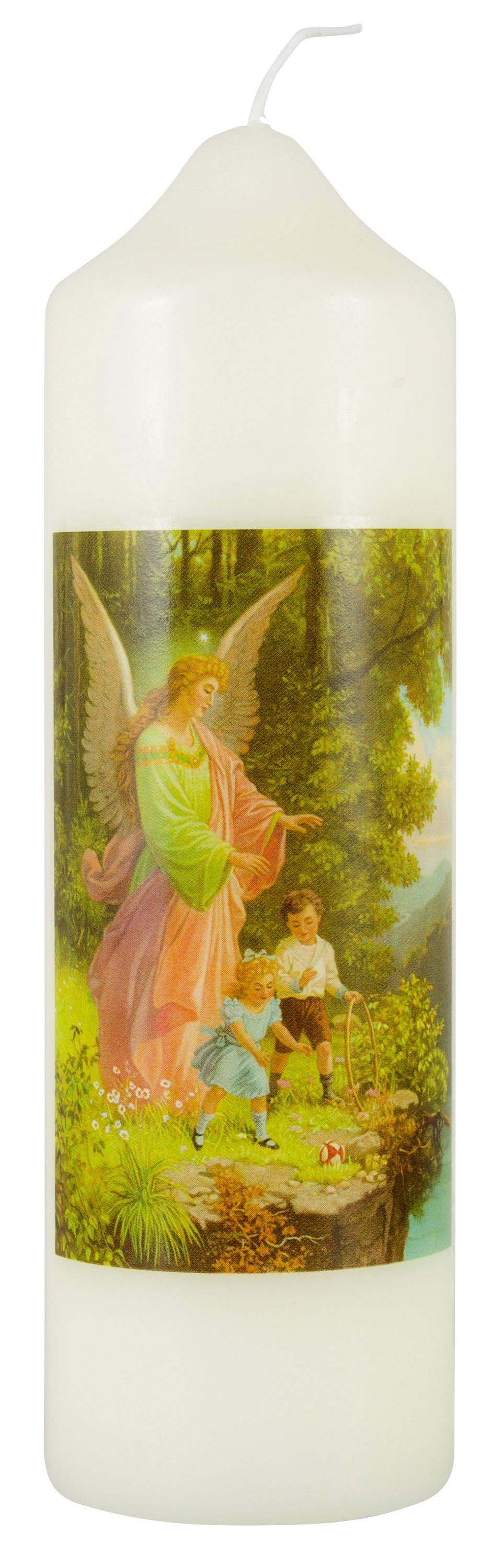 schön gestaltete Motivkerze mit Druckmotiv Schutznegel mit Kinder. Details zum Produkt: Größe: 16,5 x 5cm Material: Wachs