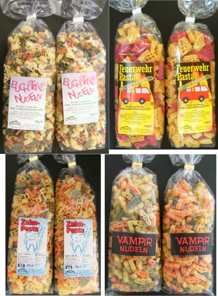 Motivnudeln ABC Feuerwehr Zahn Fledermaus je 1Set = 2x 250g Nudeln Pasta Streuteile