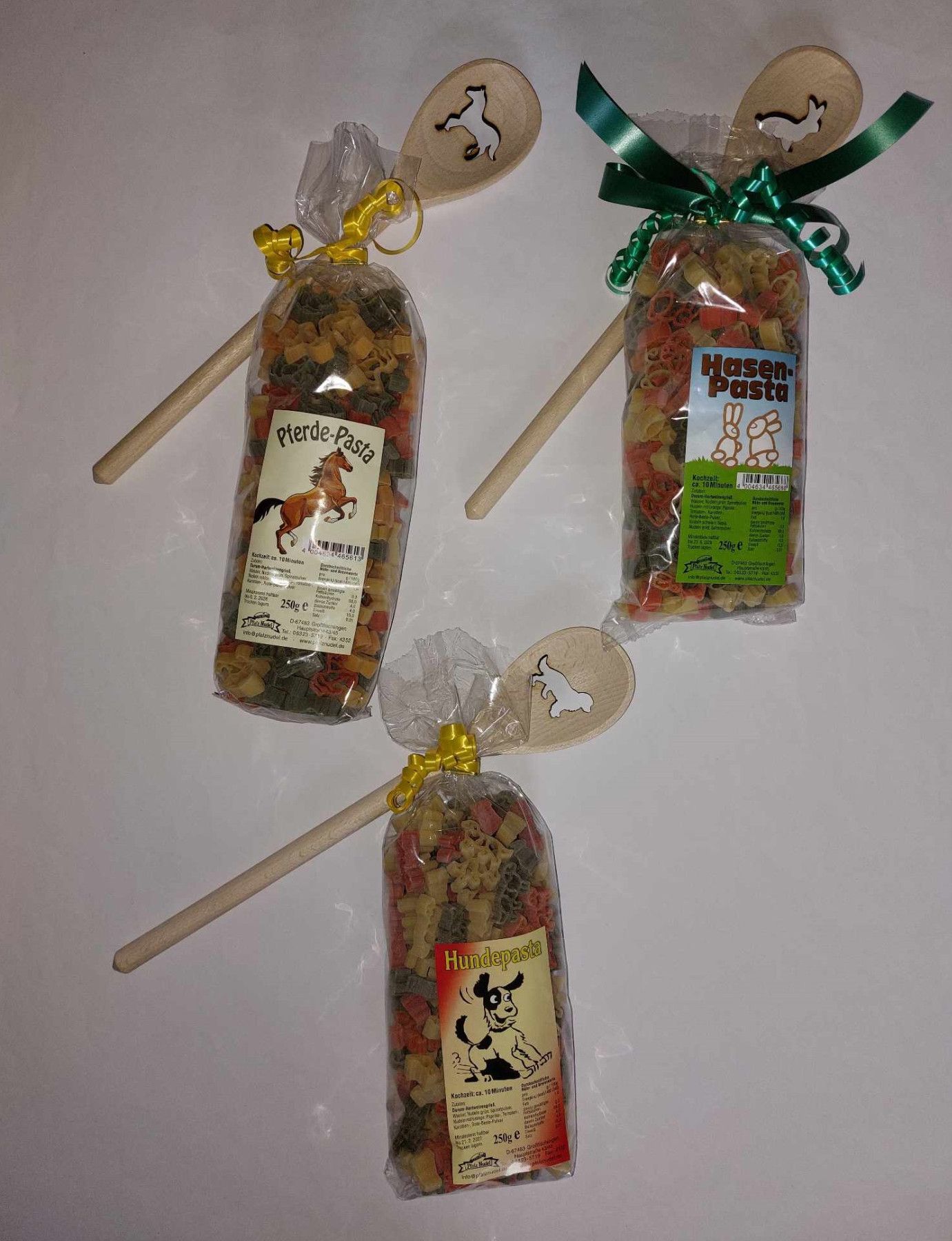 Motivnudeln mit Kochlöffel: Pferde, Hasen o. Hunde, 250g Nudeln + Löffel, Geschenk