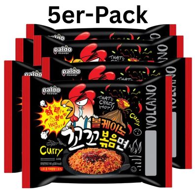 • 5er-Pack Paldo Instantnudeln Stir-Fried Volcano Huhn Scharf 140g