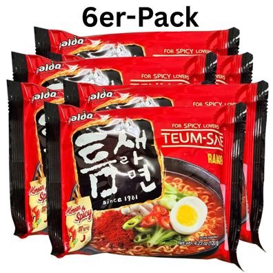 • 6er-Pack Paldo Instantnudeln Teumsae Ramyun Scharf 120g