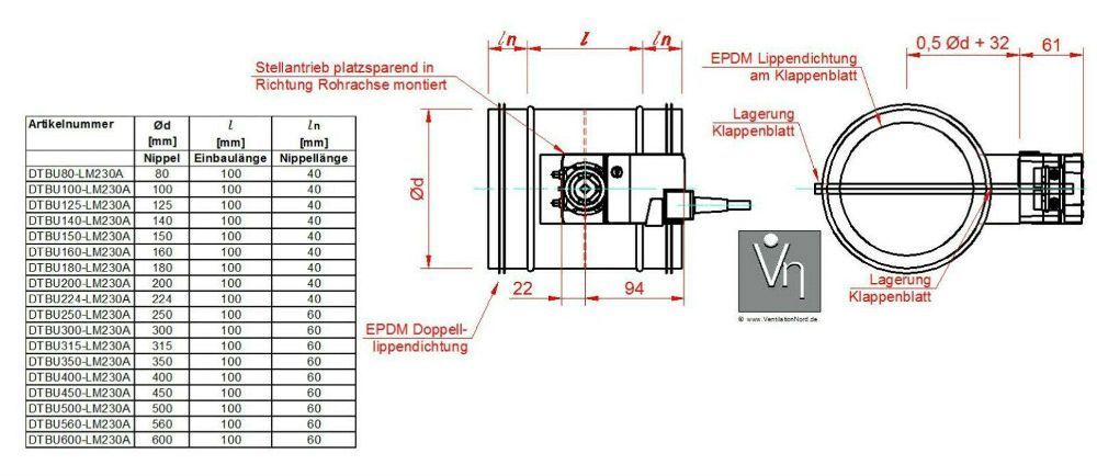 Absperrklappe dichtschließend DTBU mit Belimo Stellantrieb Klappe: Absperrklappe Stahl, verzinkt, mit 275g m² Zinkauflage mit EPDM Dichtlippen für Luftdichte Montage nach DIN EN 1751 Klasse D beste Klasse dieser Norm Klappenblatt mit EPDM Dichtlippe dichtschließend nach DIN EN 1751 Klasse D beste Kl