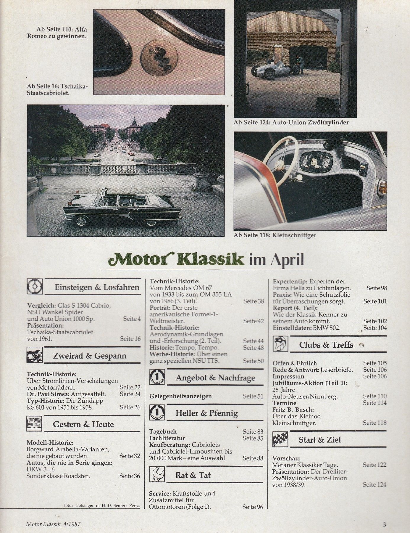 Motor Klassik Heft 4 1987 Vergleich: Glas S 1304 Cabrio - NSU Wankel Spider - Auto Union 1000 Sp Tschaika Staatscabriolet 1961 Historie: Zündapp KS 601 Borgward Arabella DKW 3=6 Roadster Mercedes OM 67 bis zum OM 355 LA Kaufberatung: Cabrio-Limousinen bis 20 000 DM Präsentation: Dreiliter Zwölfzylin... Mehr