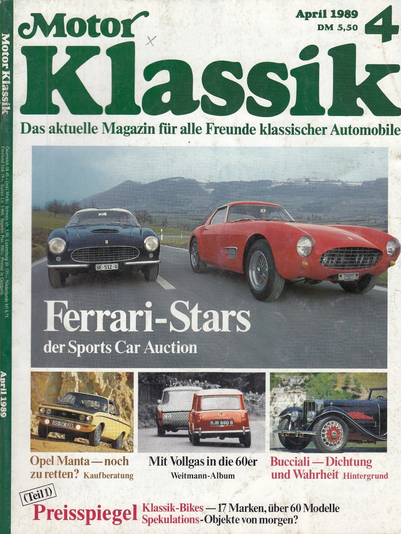 Motor Klassik 4 / 1989, Ferrari, Manta, Bucciali, Porsche 356, Kapitän