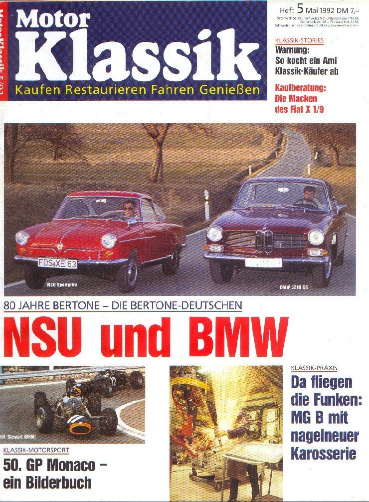 Motor Klassik 5/ 1992, BMW 3200 CS, Sportprinz, Fiat X1/9, MG B, Pierce-Arrow