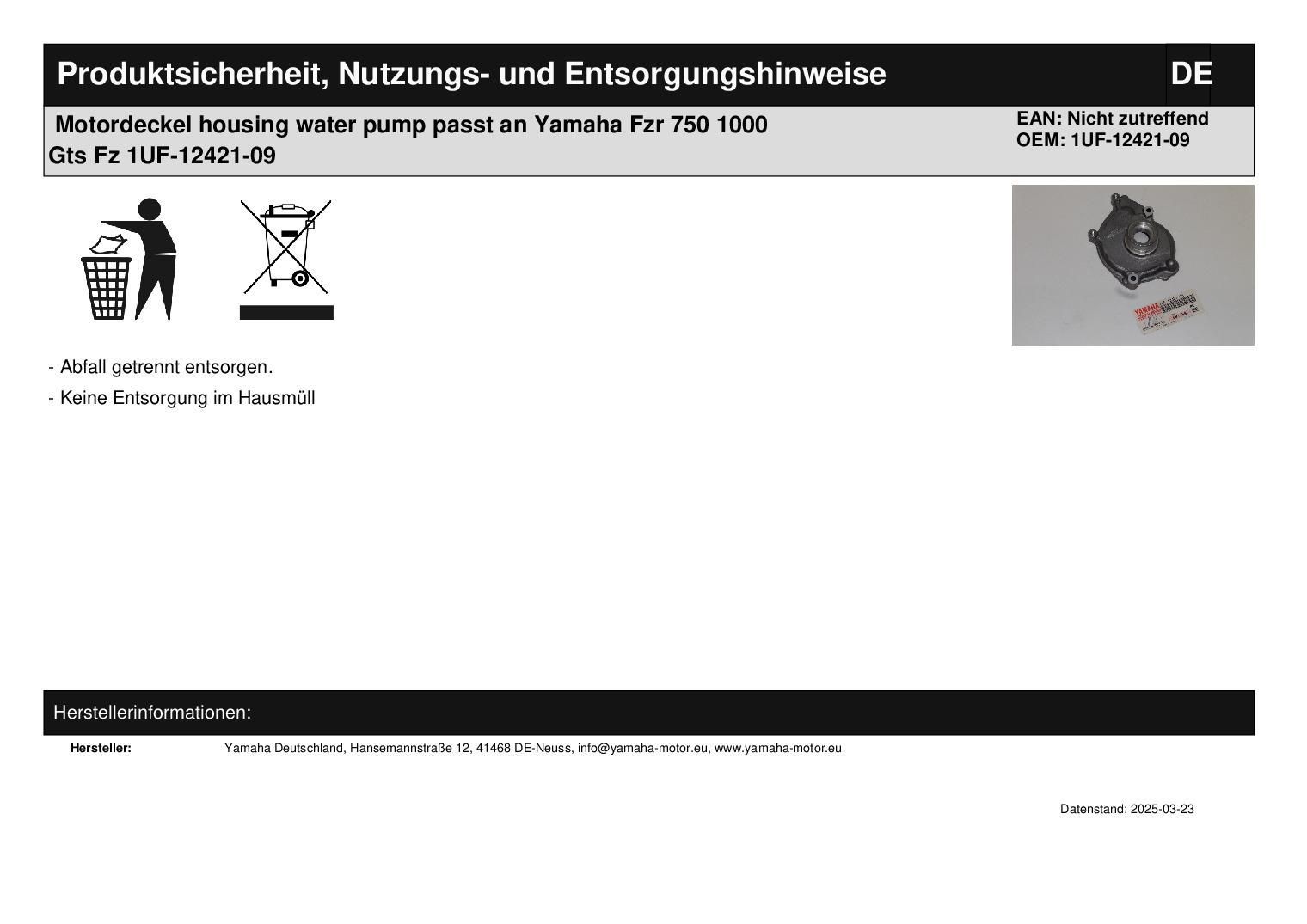 Motordeckel housing water pump passt an Yamaha Fzr 750 1000 Gts Fz 1UF-12421-09