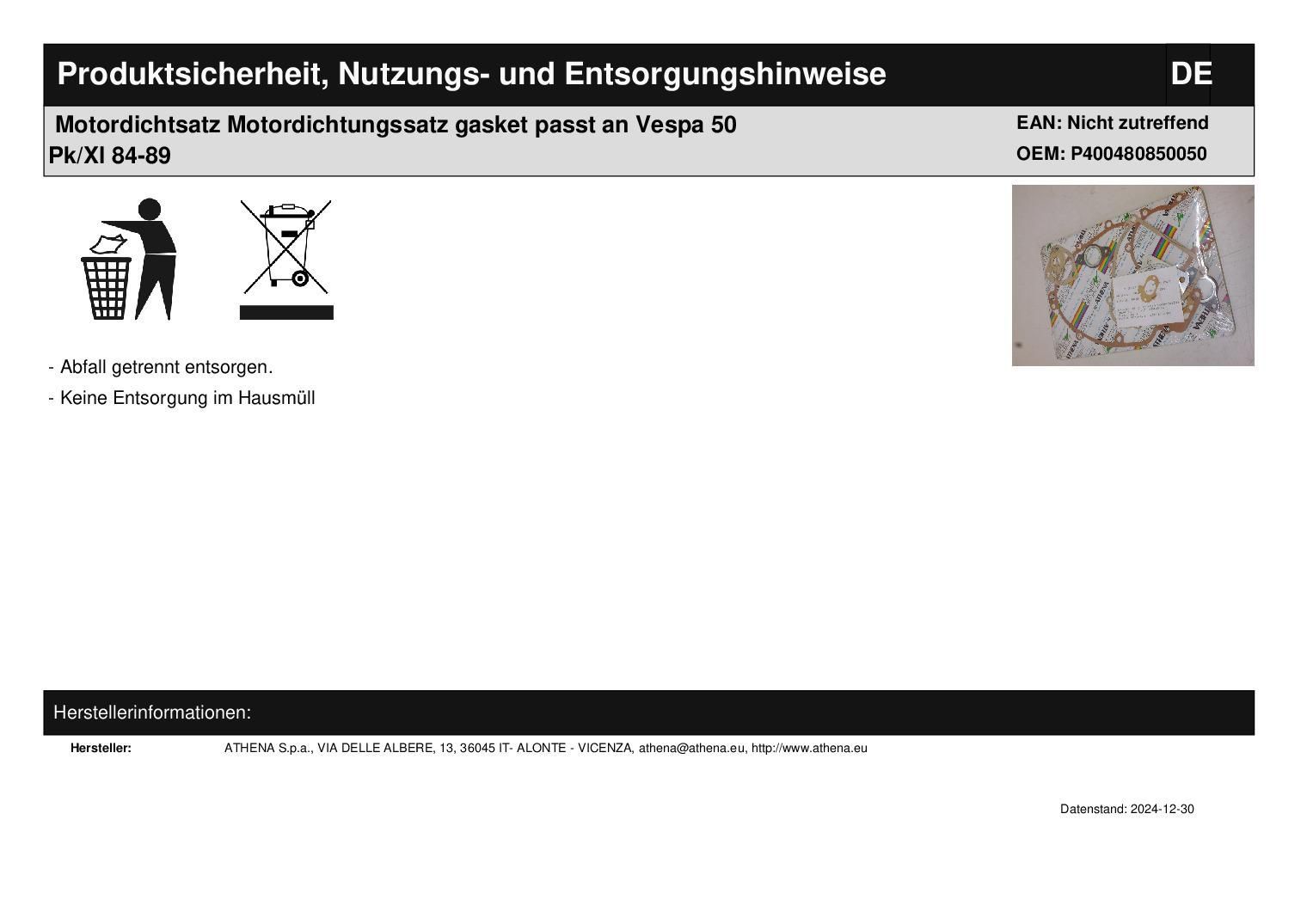 Motordichtsatz Motordichtungssatz gasket passt an Vespa 50 Pk/Xl 84-89