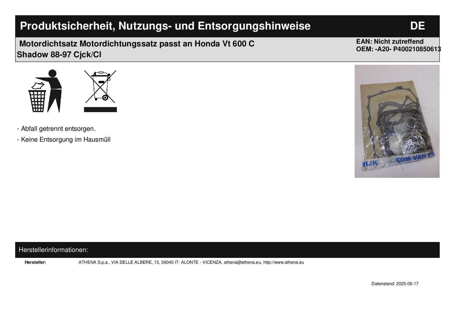 Motordichtsatz Motordichtungssatz passt an Honda Vt 600 C Shadow 88-97 Cjck/Cl