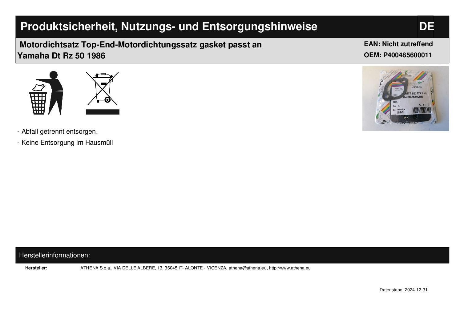 Motordichtsatz Top-End-Motordichtungssatz gasket passt an Yamaha Dt Rz 50 1986