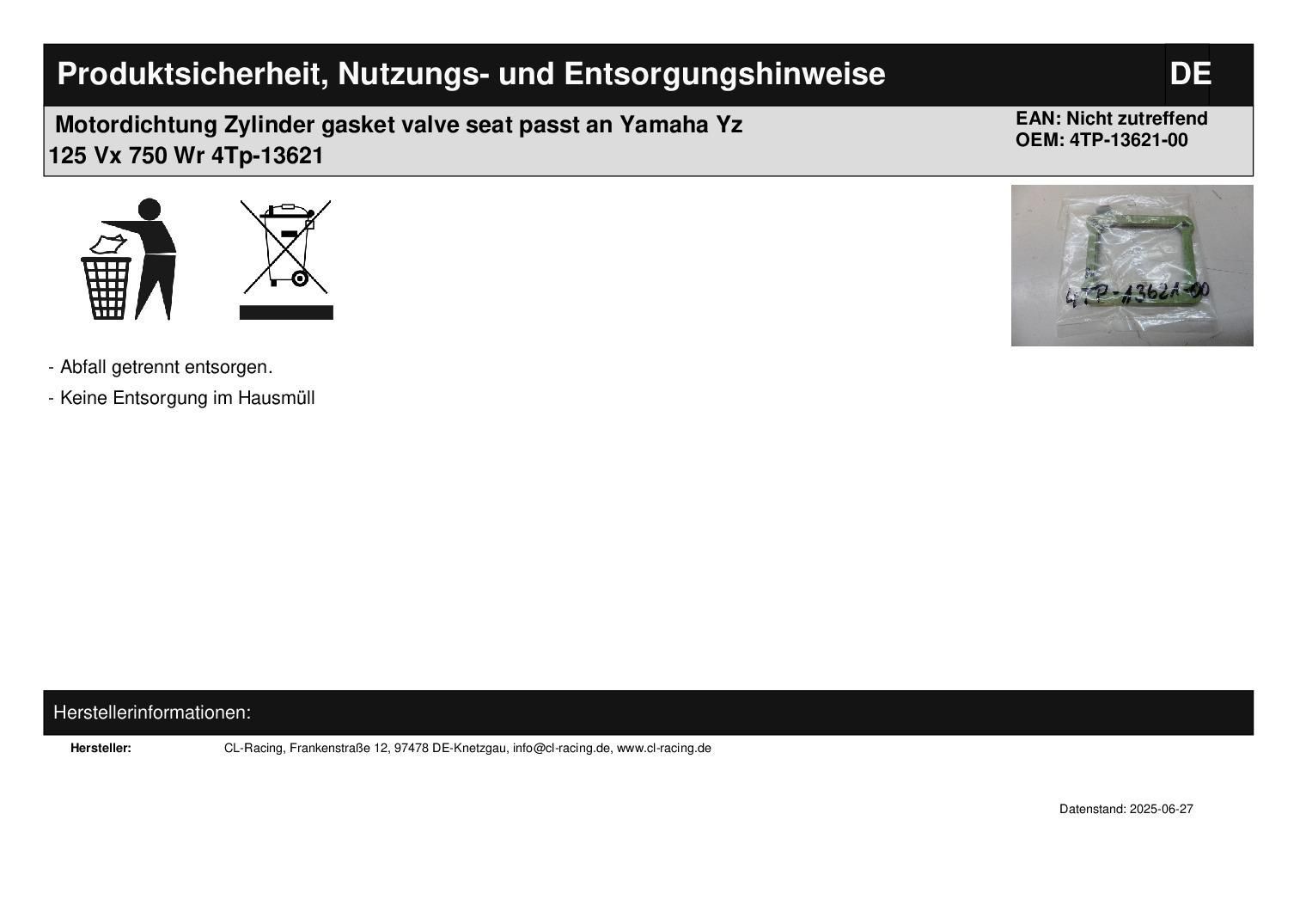 Motordichtung Zylinder gasket valve seat passt an Yamaha Yz 125 Vx 750 Wr 4Tp-13