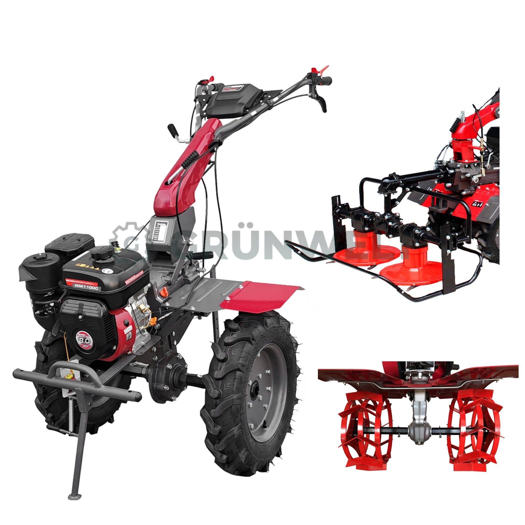 Motorhacke Set Weima WM1100C-6 Deluxe Benzin 7 PS Kreiselmäher Eisenräder Eisenradset