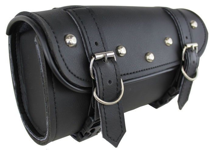 Motorrad Biker Chopper PU Leder Toolbag Universal Lenkerrolle Werkzeugtasche Nieten