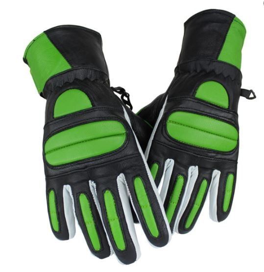 Motorrad BIKER Echt Lamm Leder Handschuhe Custom GLOVES Retro Grün