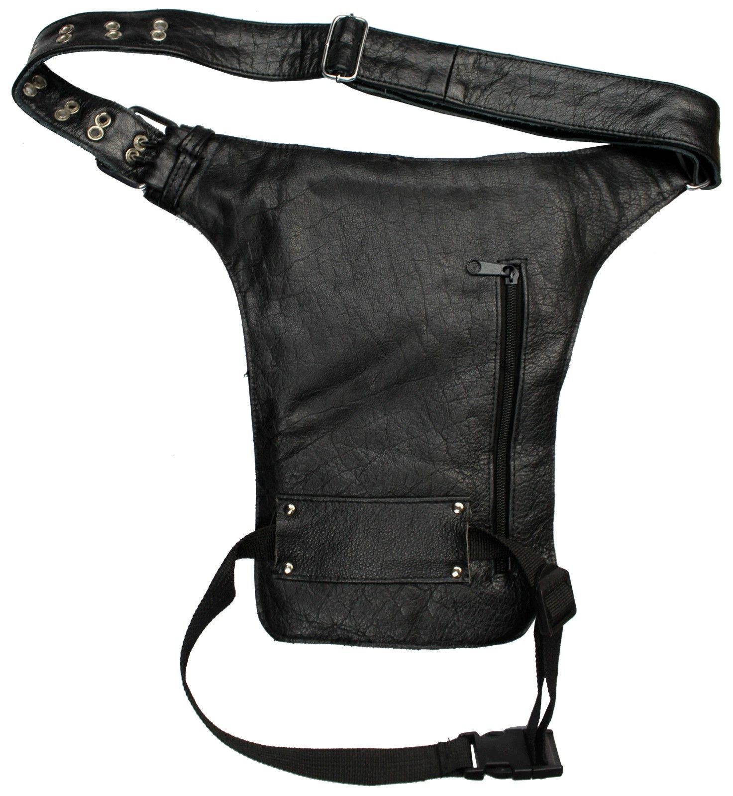 Motorrad & Biker Echt Leder Beintasche Custom Freizeit Leg Bag Schwarz mit Streifen