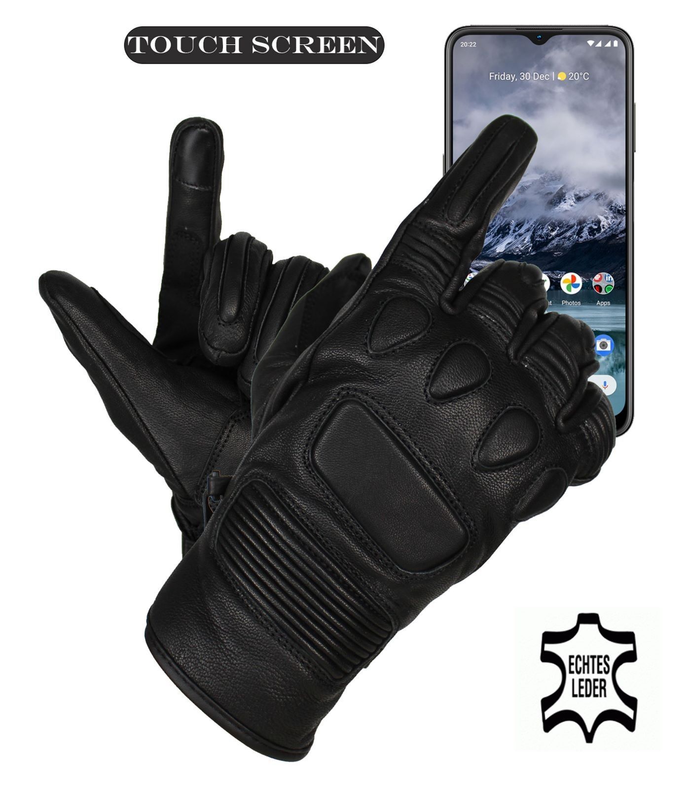 Motorrad & Biker Lamm Leder Handschuhe Retro Vintage Handschuhe Schwarz