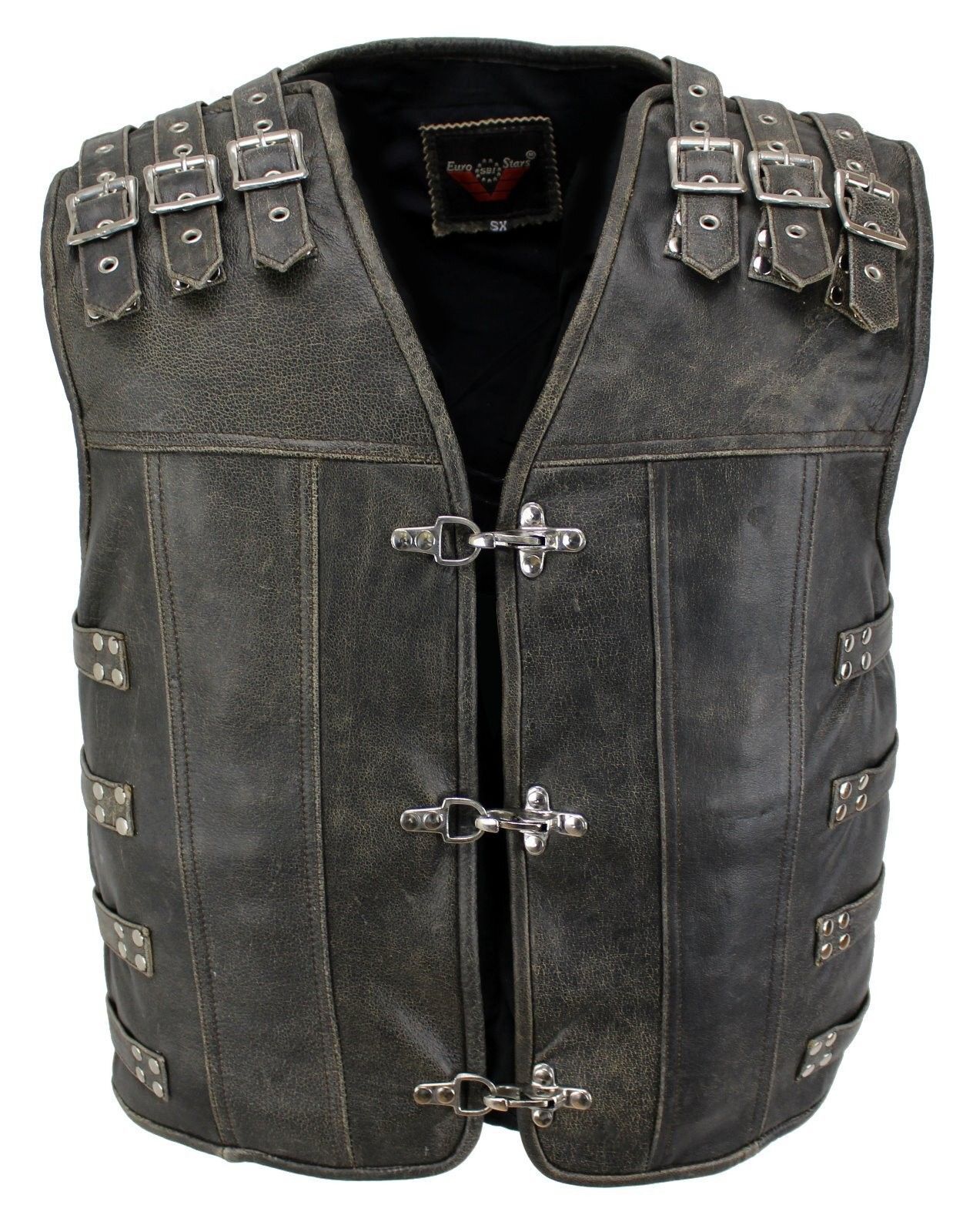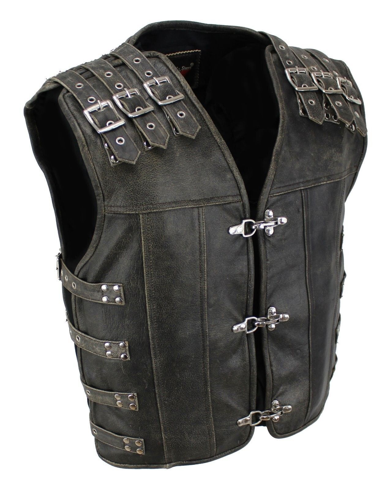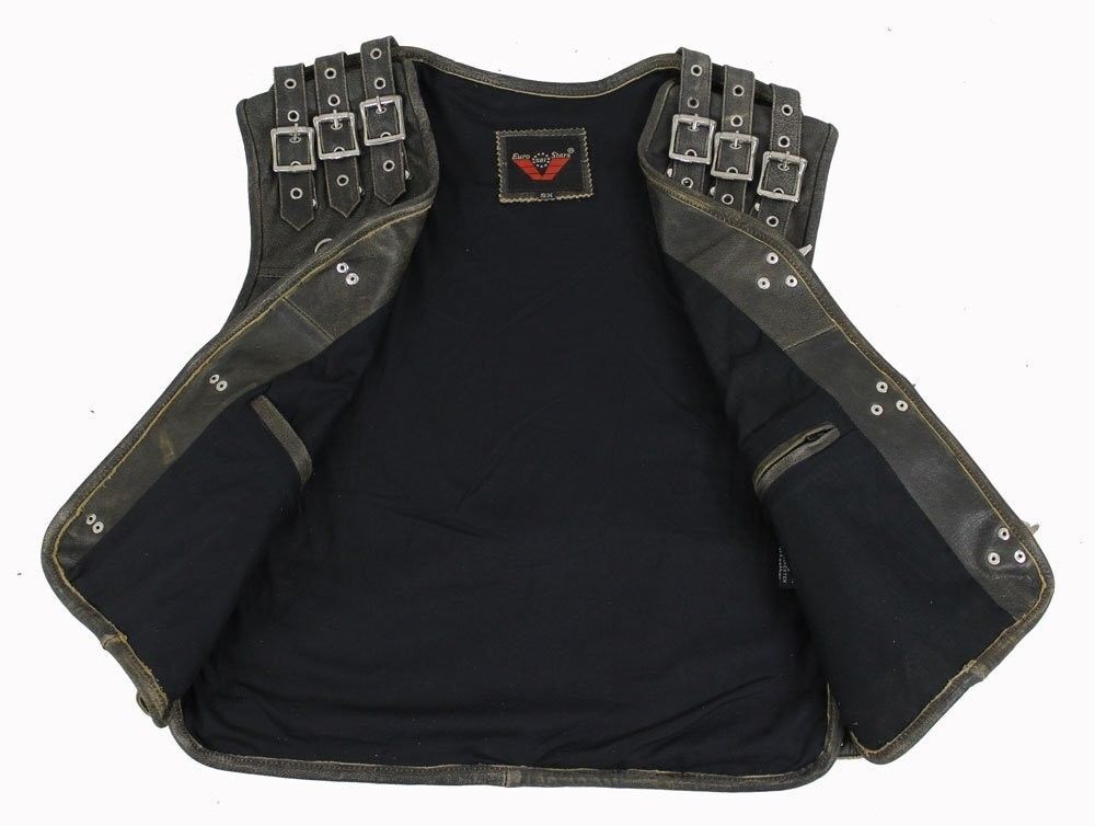 Motorrad & Biker Rind Leder Weste CUSTOM Cracker Neu Kutte CLUB 3-Schnallen CUIR