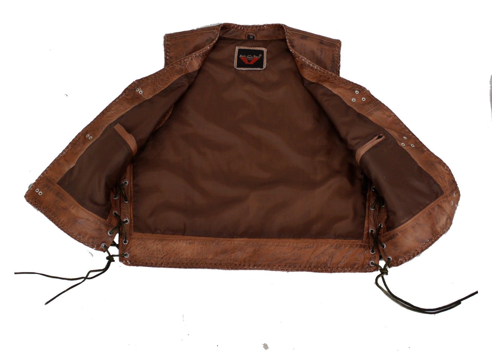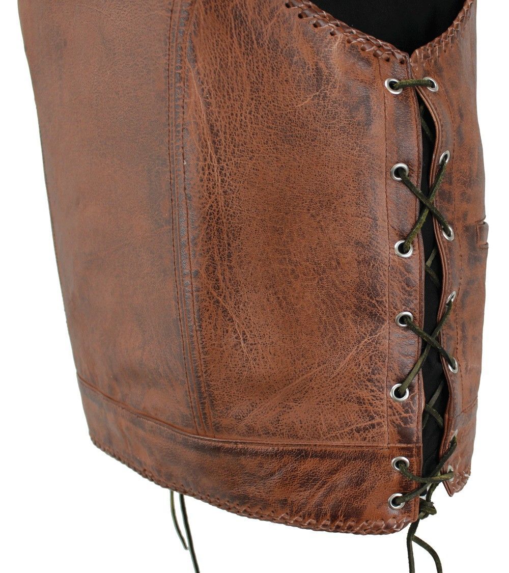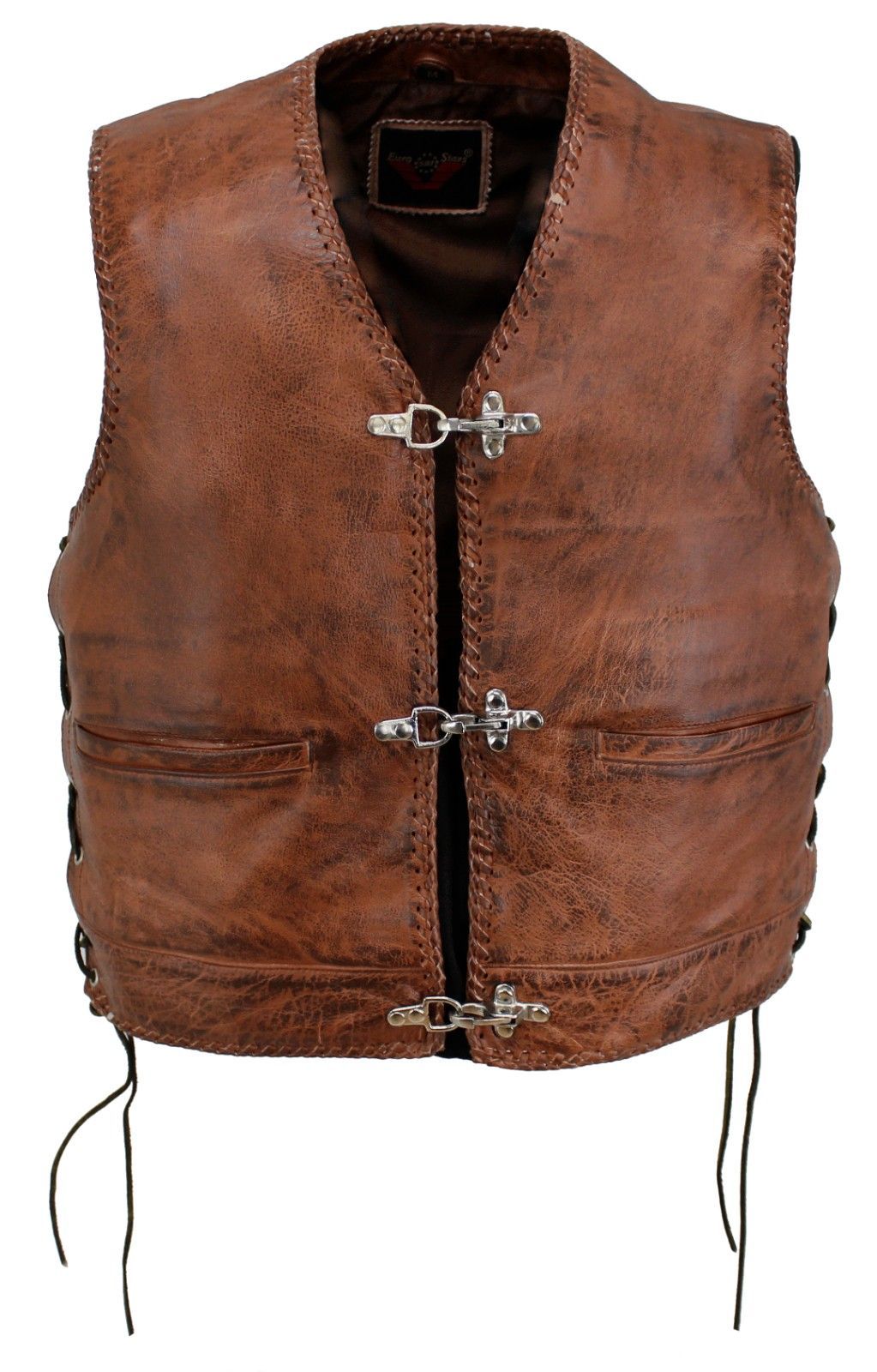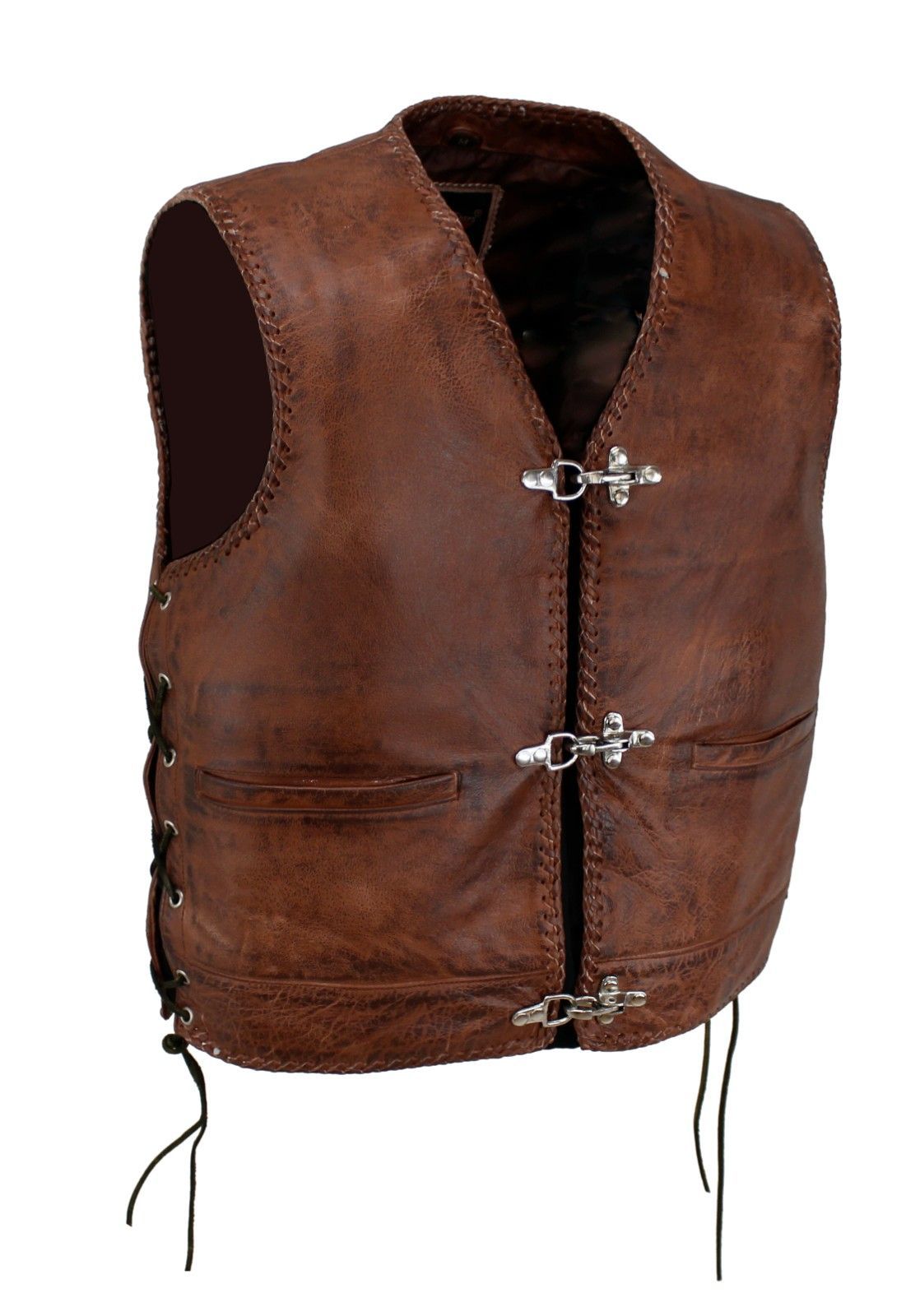 Motorrad & Biker Rind Leder Weste Custom Kutte Club Schnallen Wax Braun