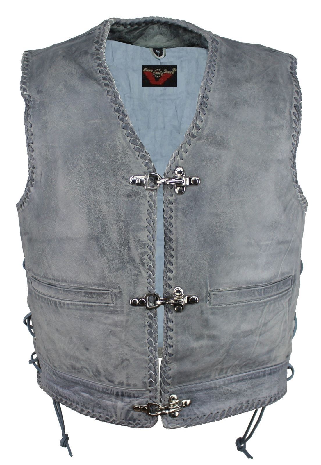 Motorrad & Biker Rind Leder Weste Custom Kutte Club Schnallen Wax Grau