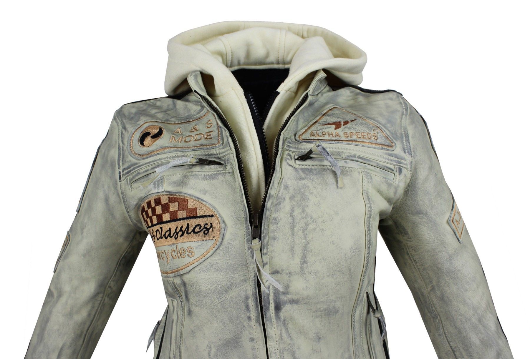 Motorrad & Freizeit Damen Leder Jacke Biker Custom Lamm Leder Jacke Creme Protektoren