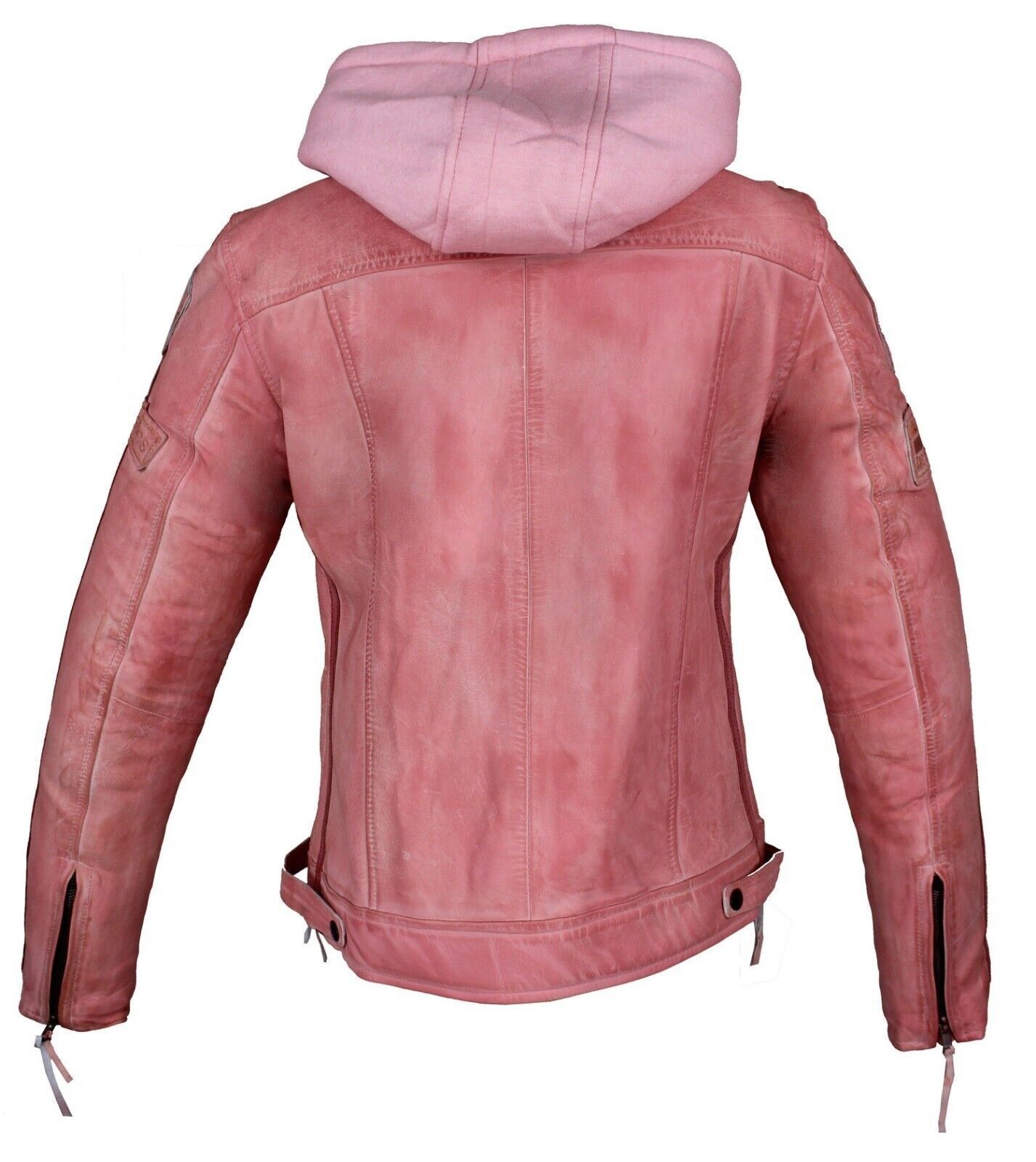 Motorrad Freizeit Damen Leder Jacke Biker Custom Lamm Leder Jacke Rosa Protektoren
