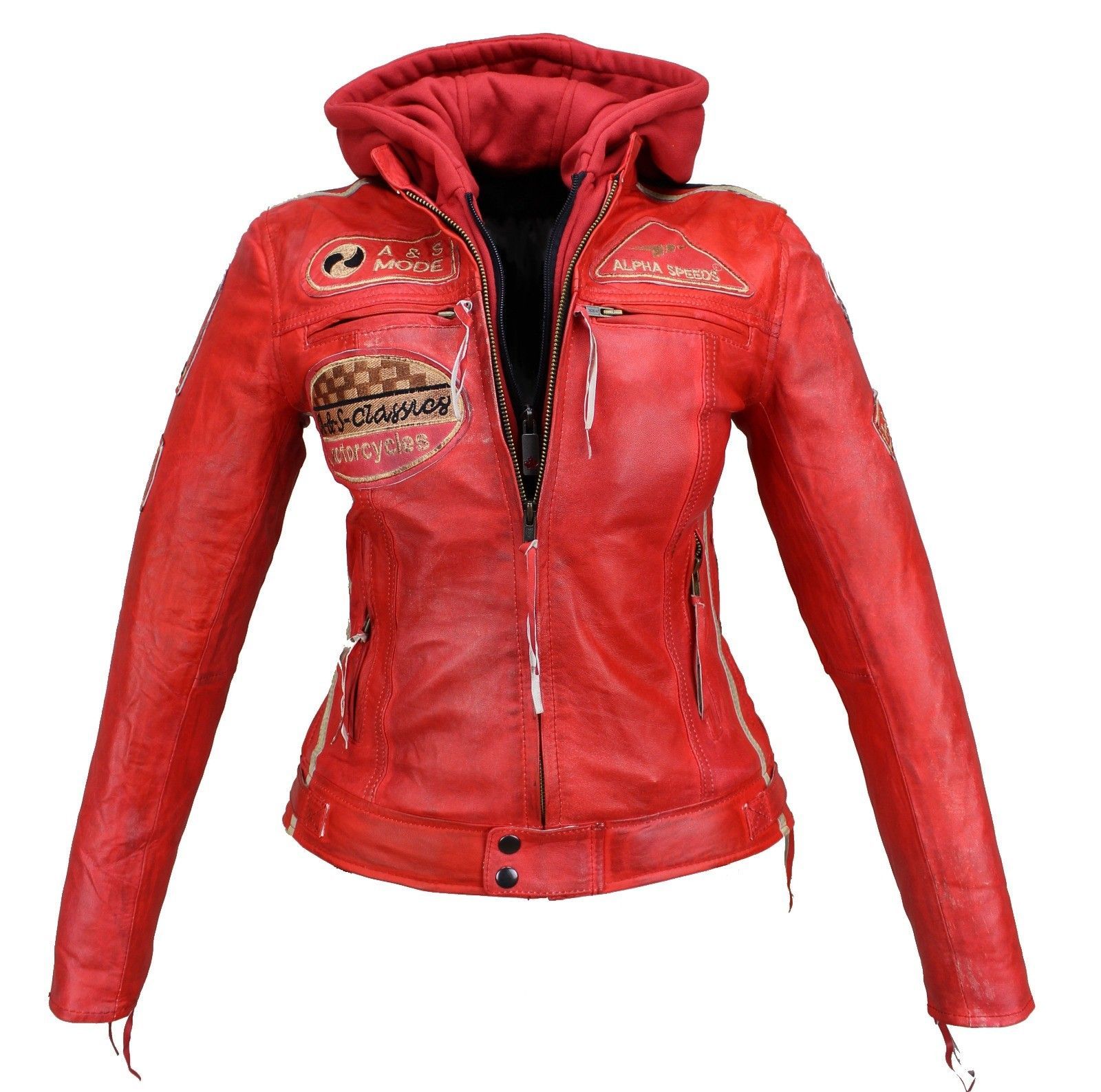 100 % Echt Leder Top Quality (1.1 mm) Lamm Leder Damen Jacke Herausnehmbare Polyester Kapuze & 2 Innen Taschen Herausnehmbare Protektoren an der Ellbogen Schulter & Rücken Ventilation an der Seiten Seitlich mit Reißverschluss verstellbar YKK Reißverschluss Sehr Stabile Trage Komfort Hoher Qu