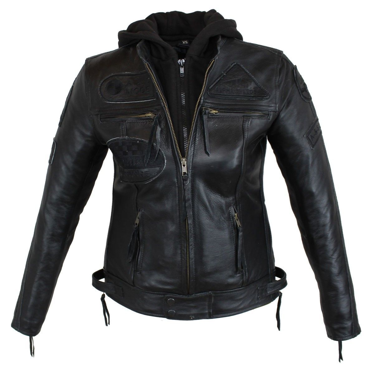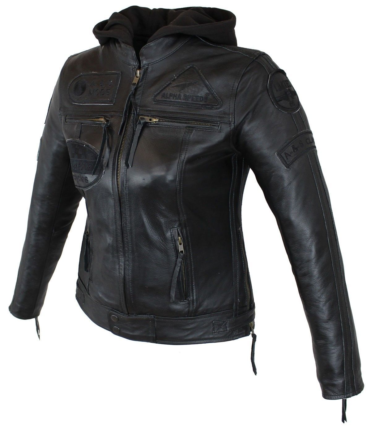 Motorrad Freizeit Damen Leder Jacke Biker Custom Lamm Leder Jacke Schwarz Protektoren
