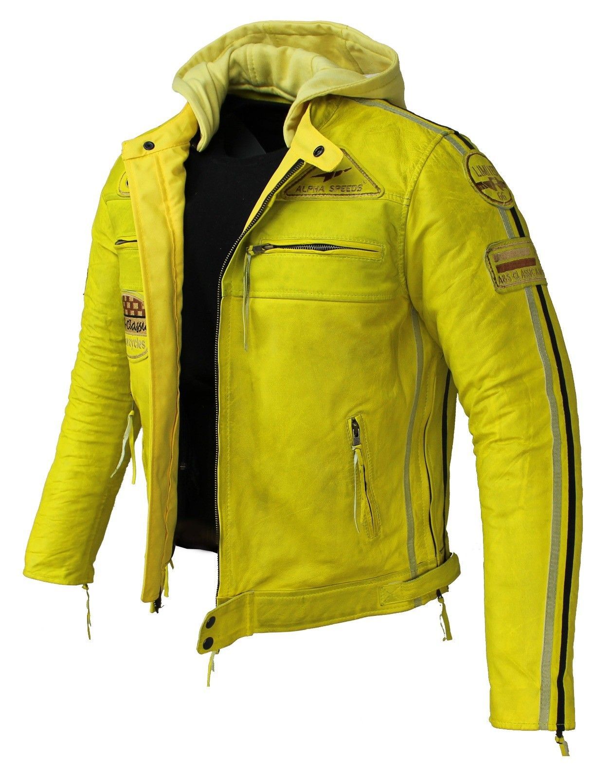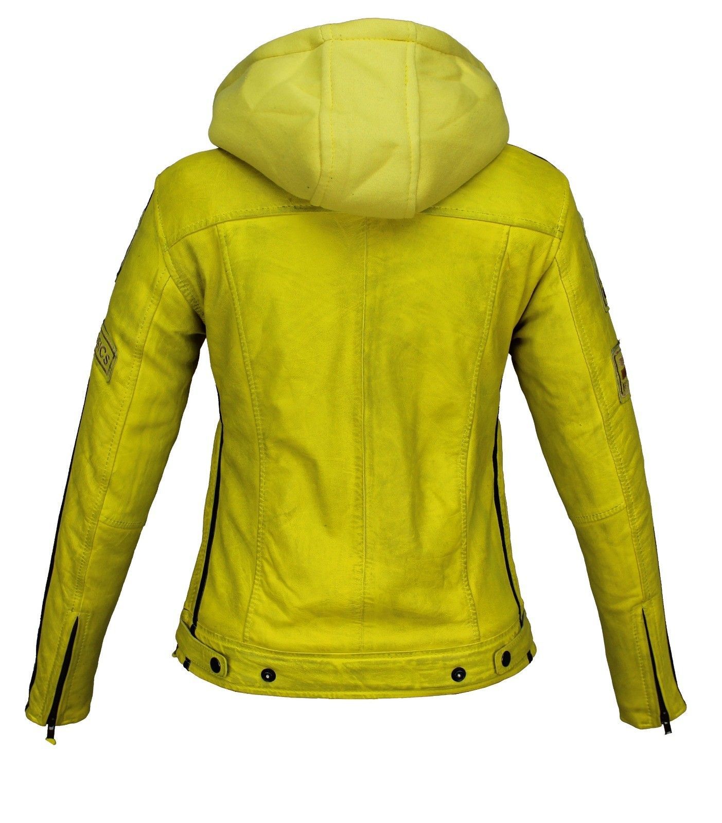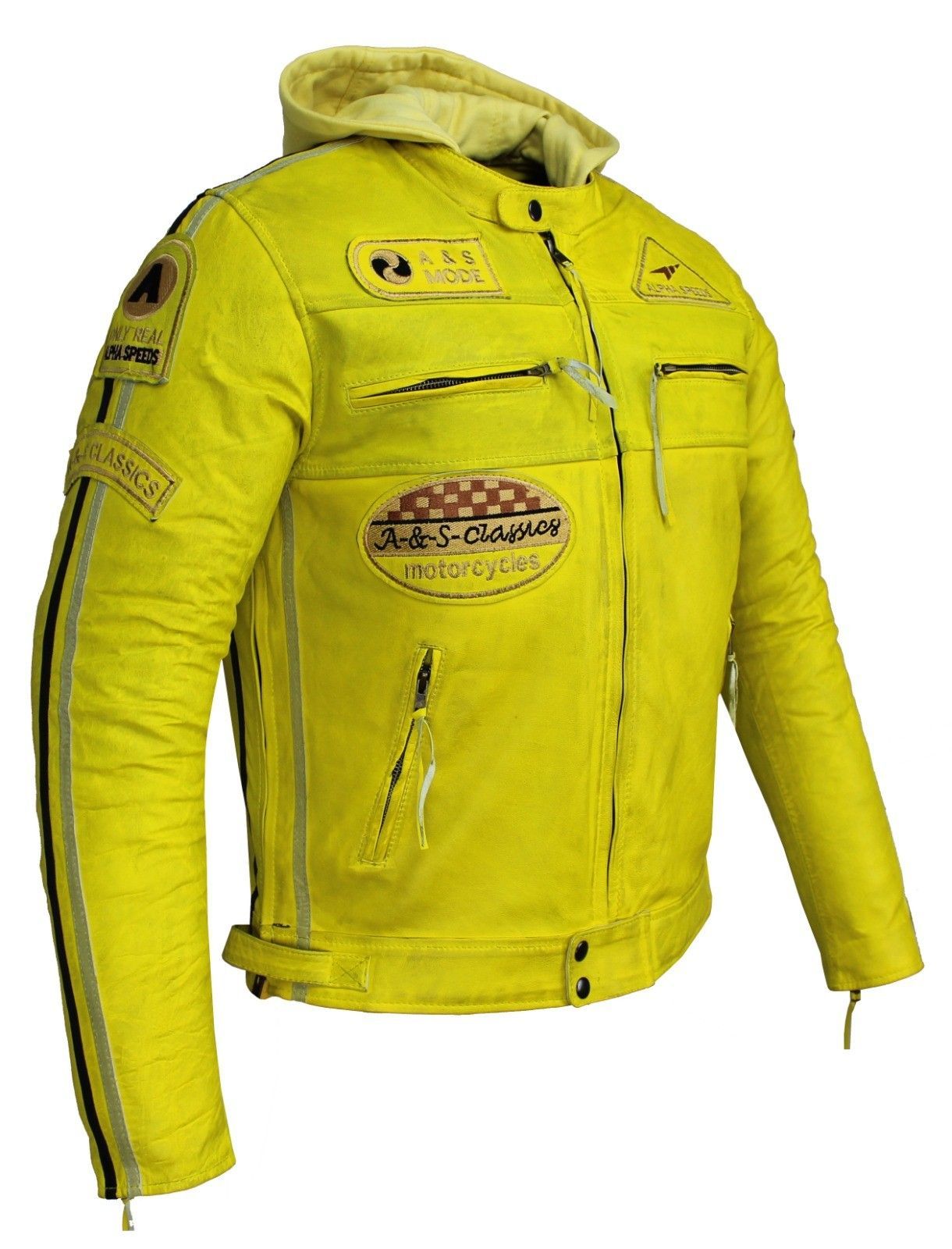 Motorrad & Freizeit Herren Leder Jacke Biker Custom Lamm Leder Jacket Gelb mit Hoodie