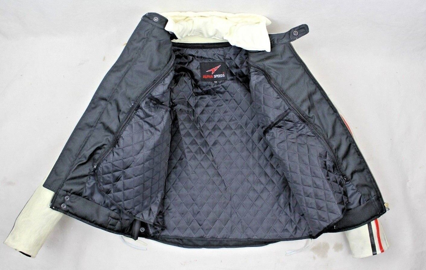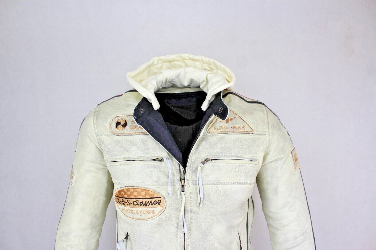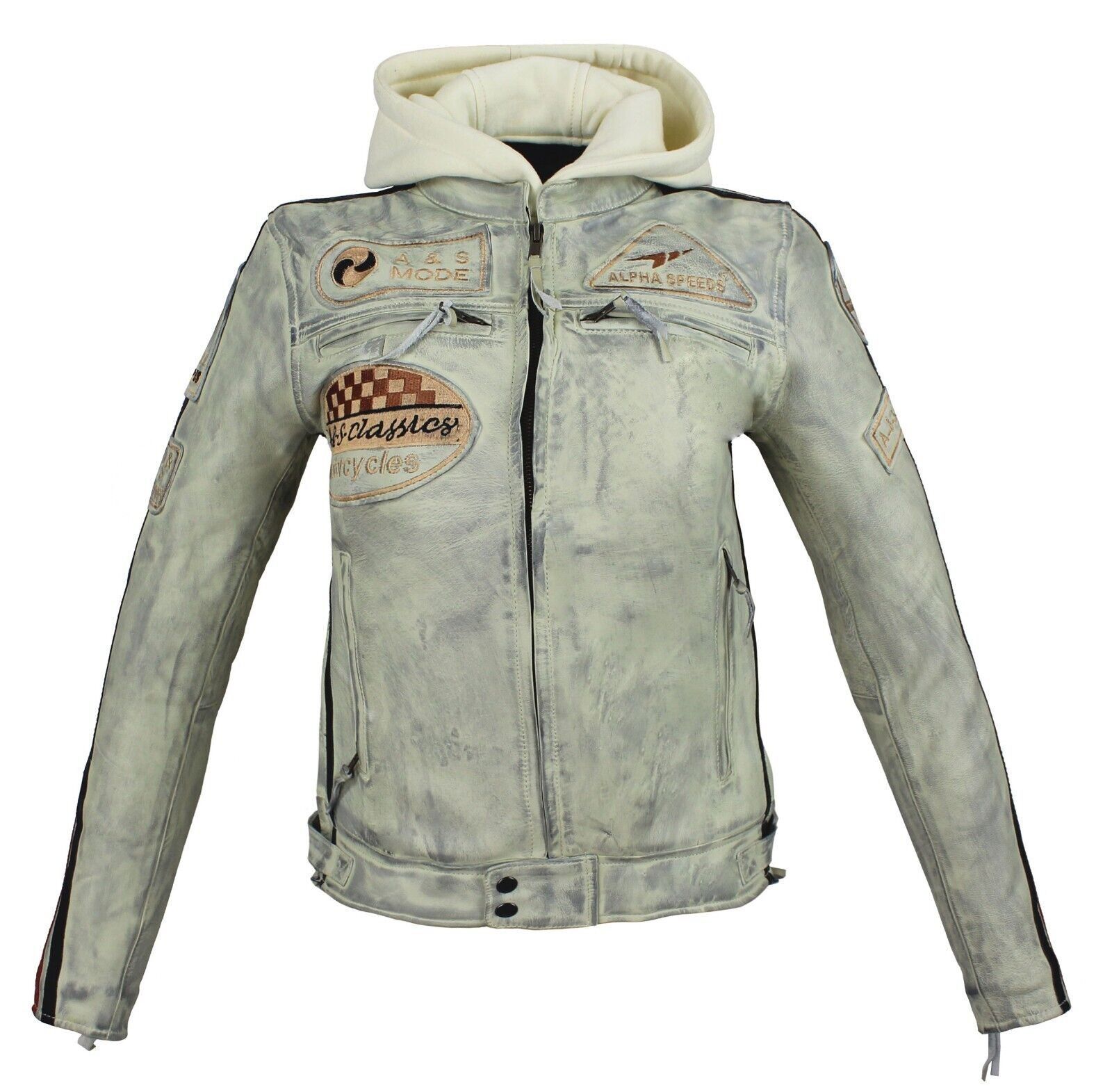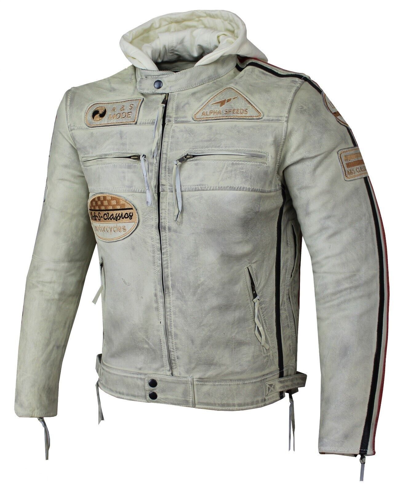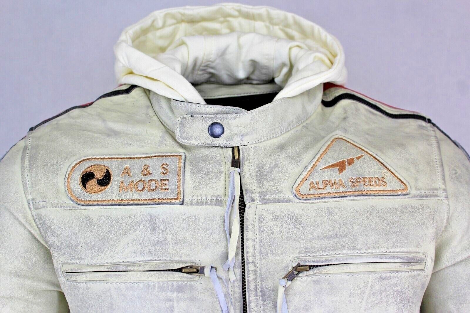 Motorrad & Freizeit Herren Leder Jacke Biker Custom Lamm Leder Jacket weiß mit Hoodie