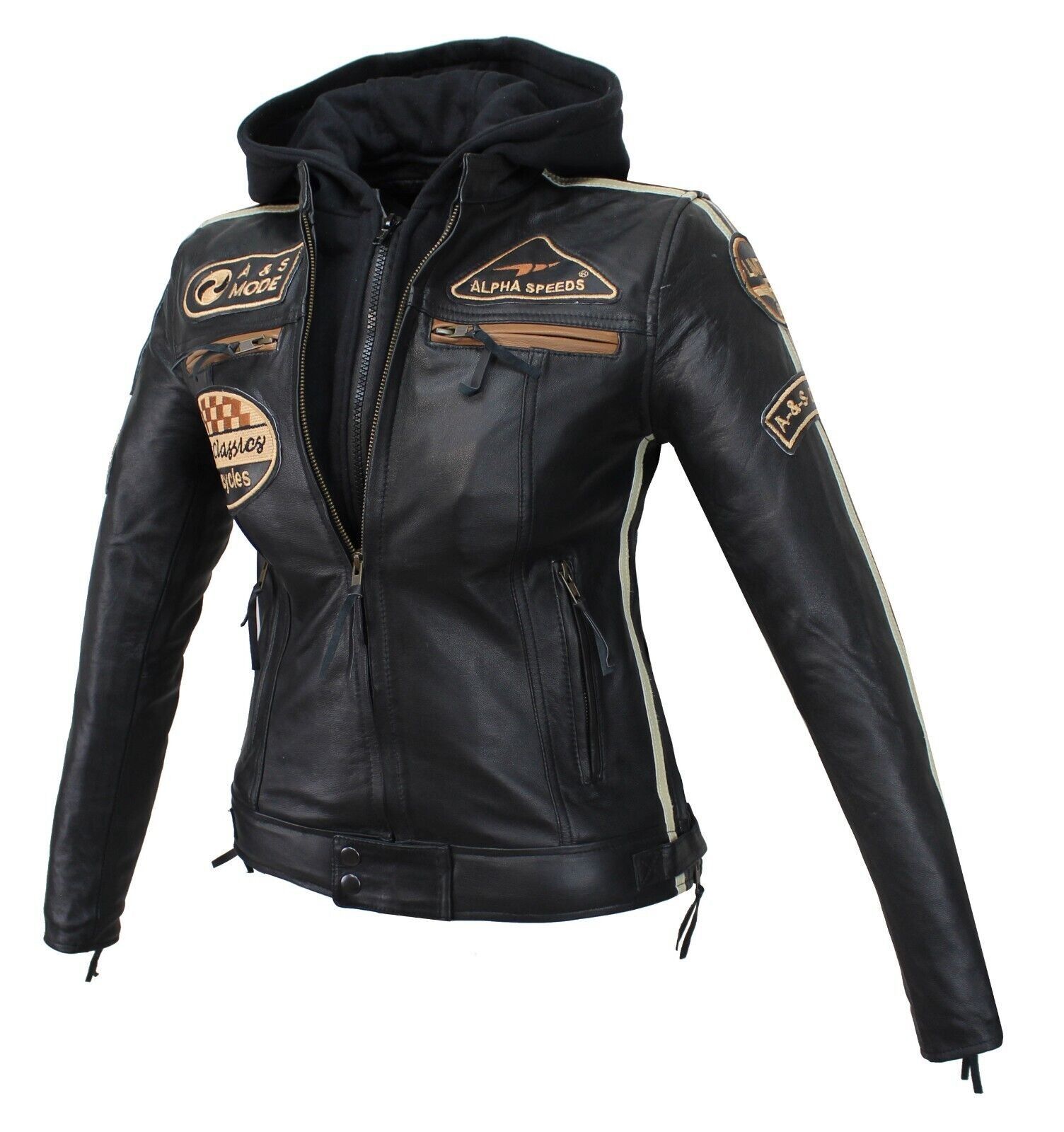 Motorrad & Freizeit Leder Jacke Biker Custom Lamm Leder Jacket Schwarz Protektor