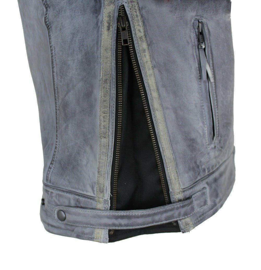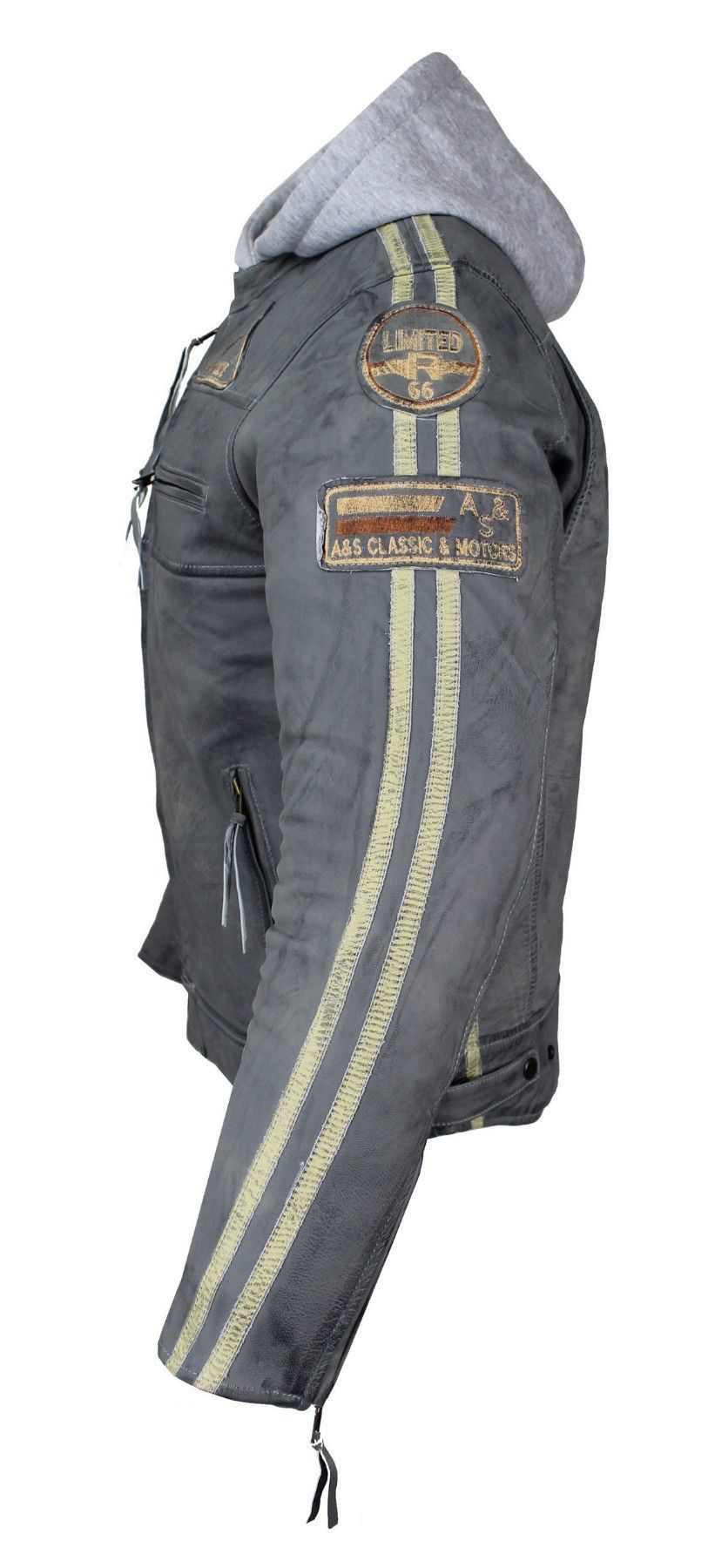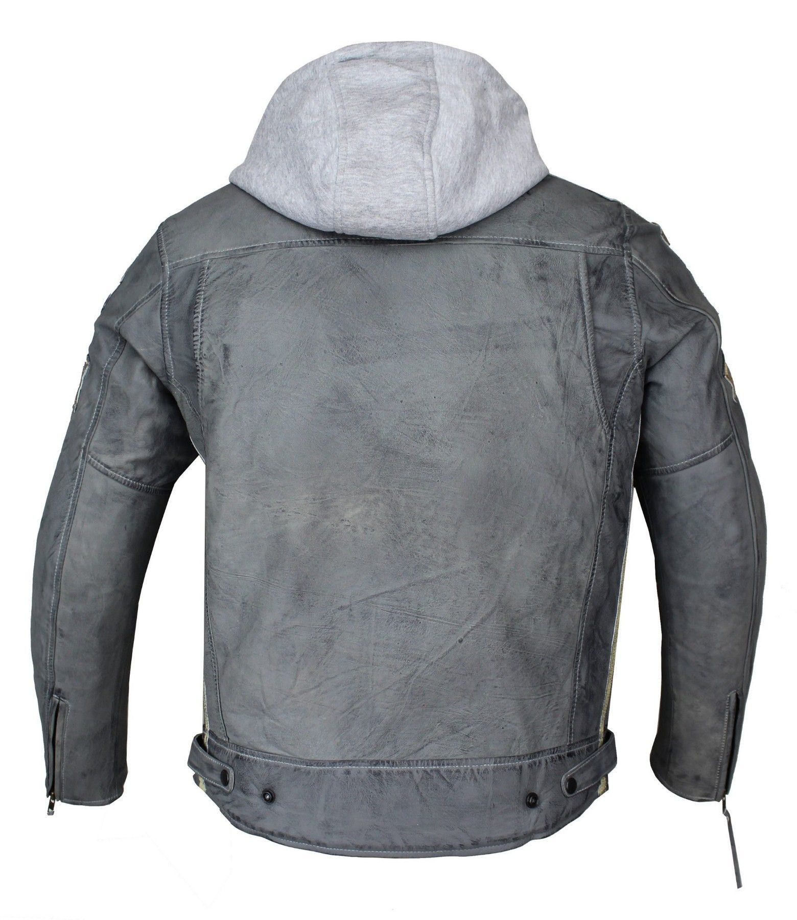 Motorrad Freizeit Lederjacke Biker Custom Lamm Leder Jacke Grau Protektoren Kapuze