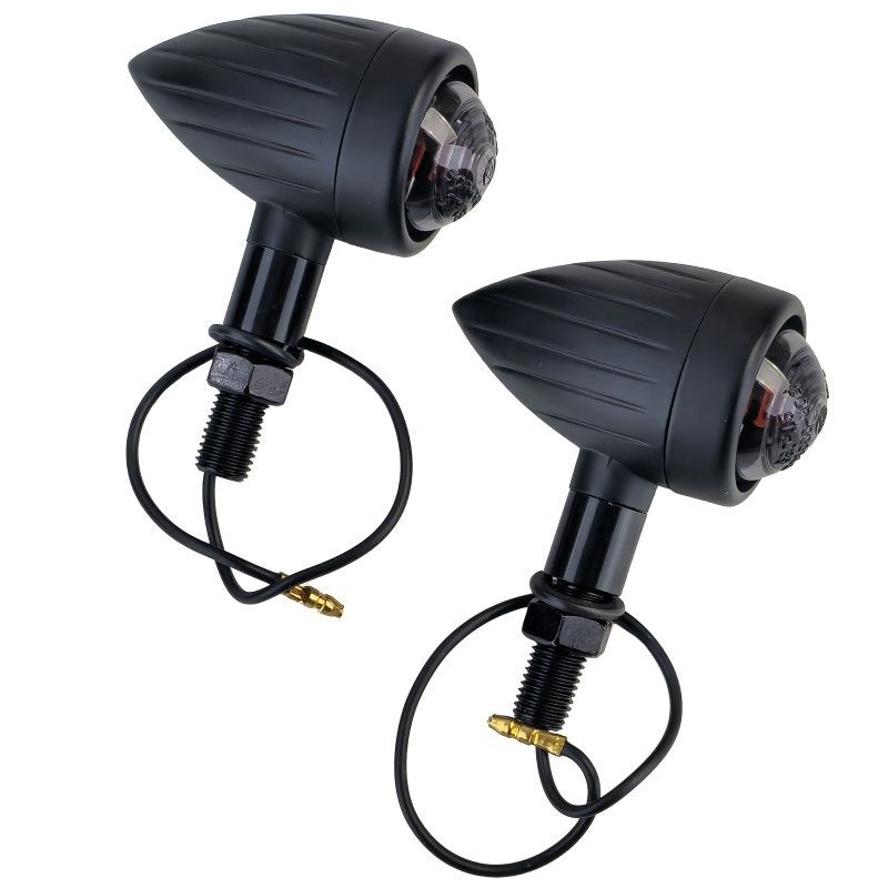 Motorrad Halogen Alu Blinker Bullet Universal Schwarz Smoke mit E-Prüfzeichen