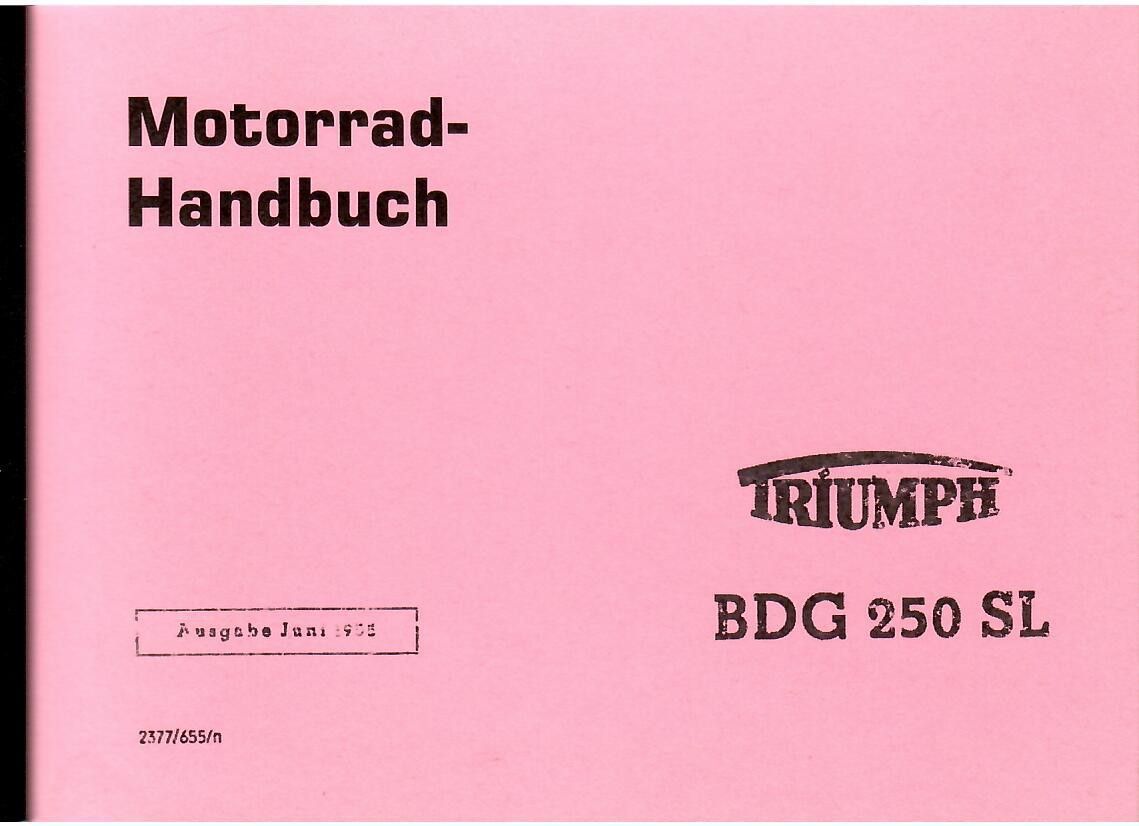 Triumph Motorrad Handbuch Triumph BDG 250SL, Bedienungsanleitung, Oldtimer