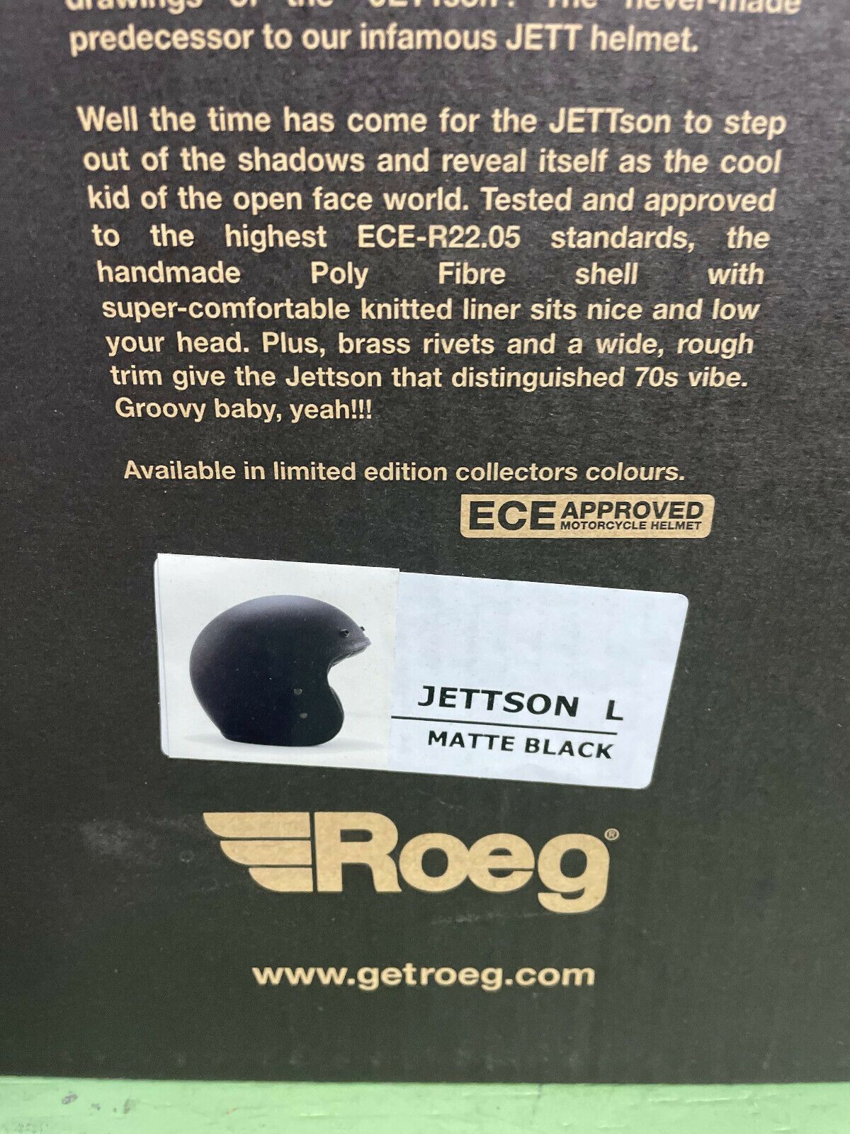 Das neue Old School -Kind von ROEG®, der JETTson Helm, hat eine handgefertigte PolyFibre-Schale in vier Größen mit einem super bequemen Strickfutter, das schön tief auf dem Kopf sitzt. Getestet und nach den höchsten ECE-R22.05-Standards zugelassen. Komplett mit gepolstertem Kinnriemen und klassi