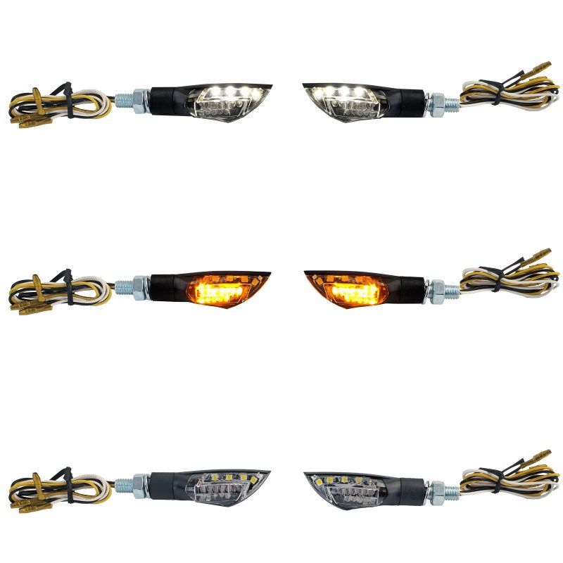Motorrad LED Universal Blinker Dual + Standlicht Schwarz mit E-Prüfzeichen