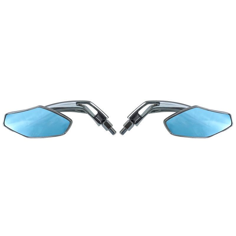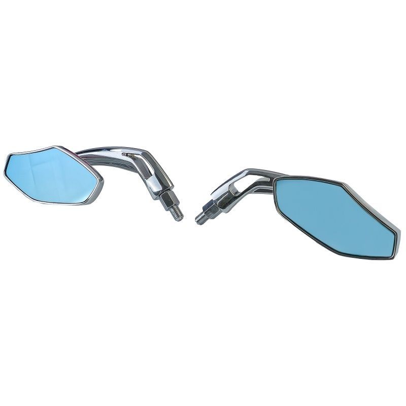 Motorrad Universal Aluspiegel Spiegelsatz Luca Style Chrom mit blauen Glas
