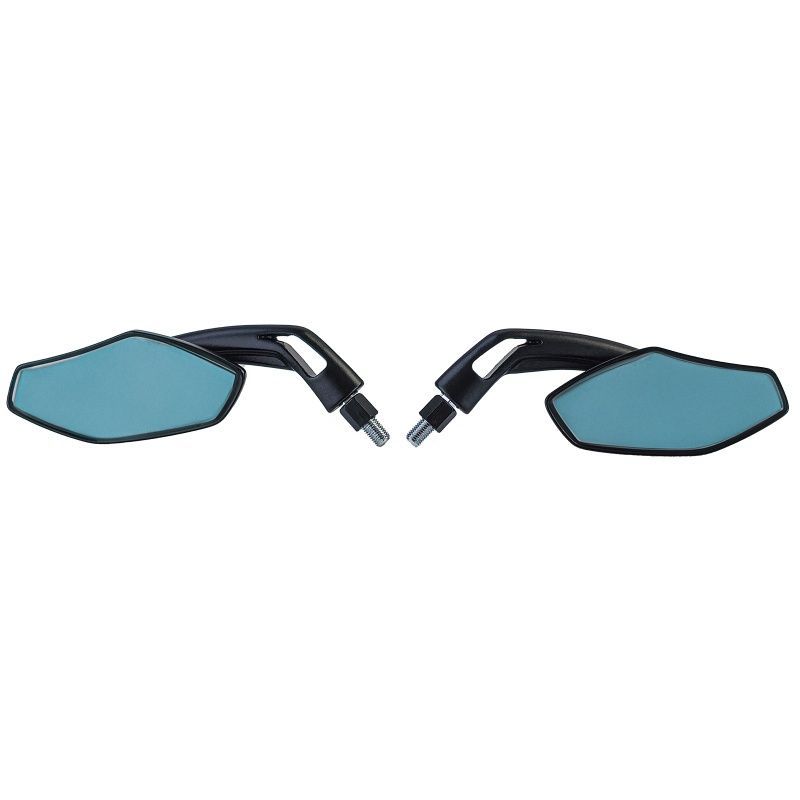 Motorrad Universal Aluspiegel Spiegelsatz Luca Style Schwarz mit blauen Glas