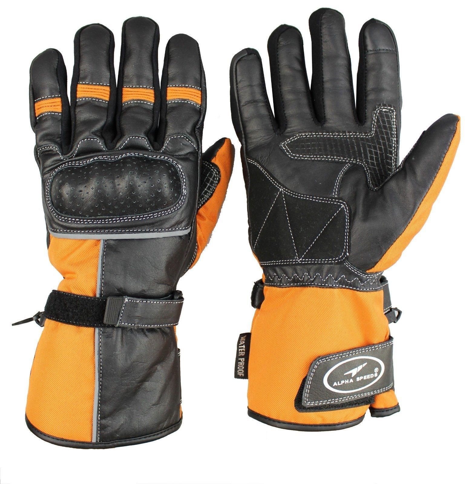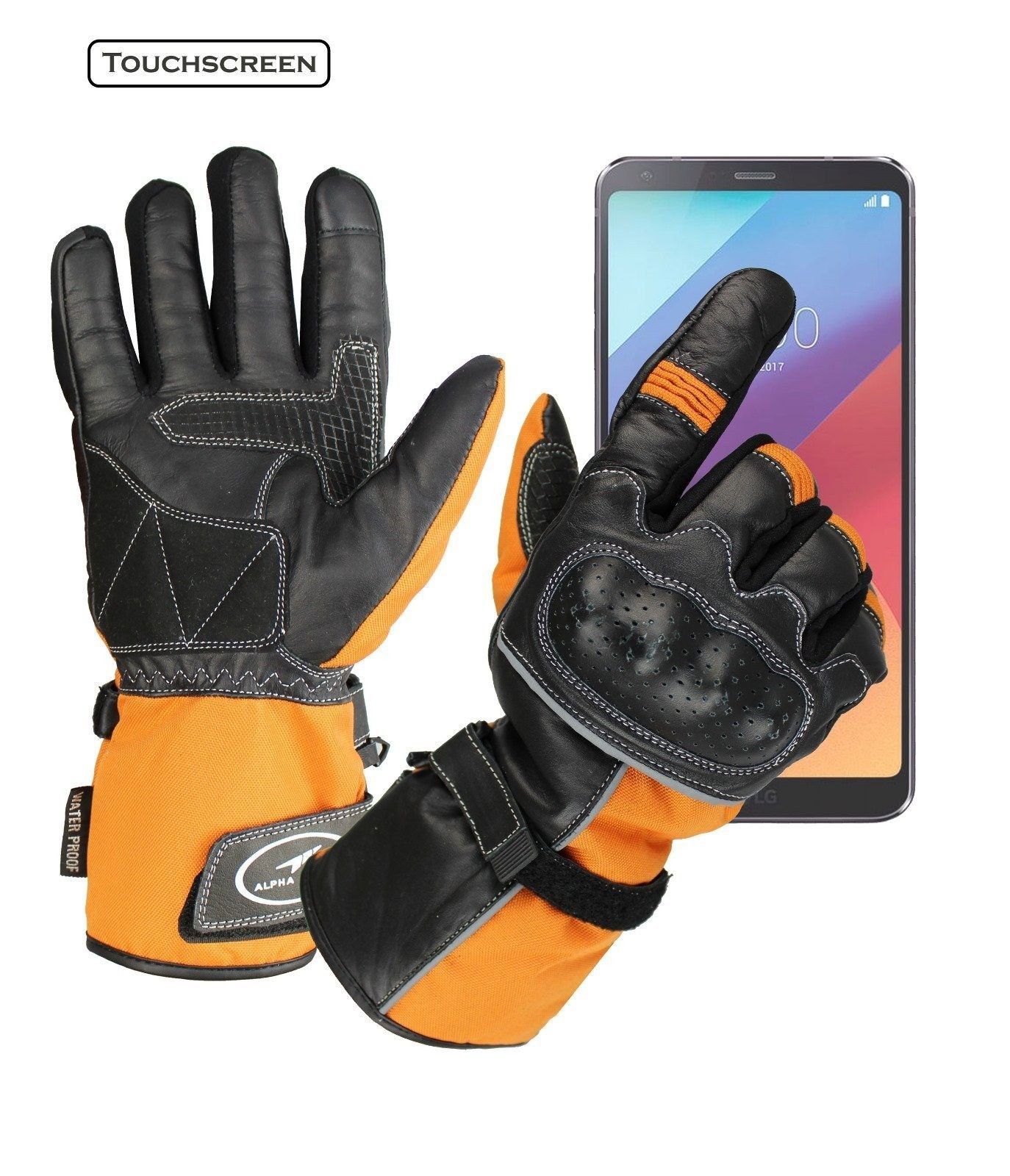 Artikelbeschreibung: Alpha Speeds - Motorradhandschuhe Speziell für Winter Regenwetter in Orange Wasserdicht und Atmungsaktiv + Sehr gute Passform und weicher Griff Sehr stabile Tragekomfort mit Knöchelschutz + Handgelenk elastisch verbaut zum einfachen Ein -Aus Ziehen Mit Touchscreen Funktion und 2
