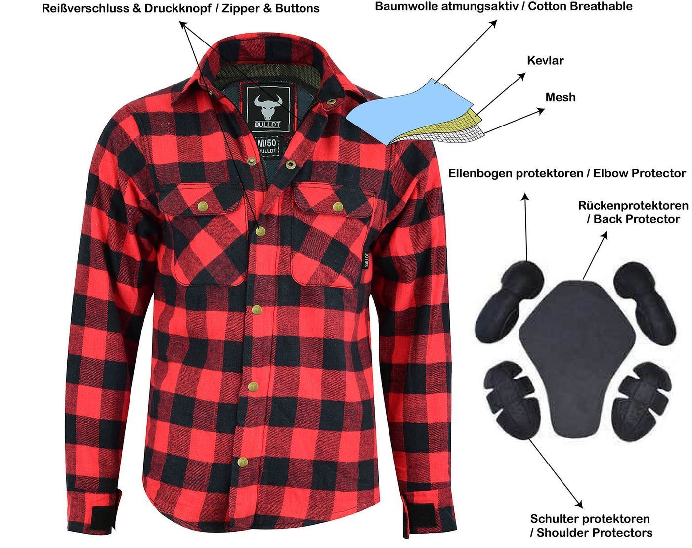 Motorradhemd Rot / Schwarz mit Protektoren