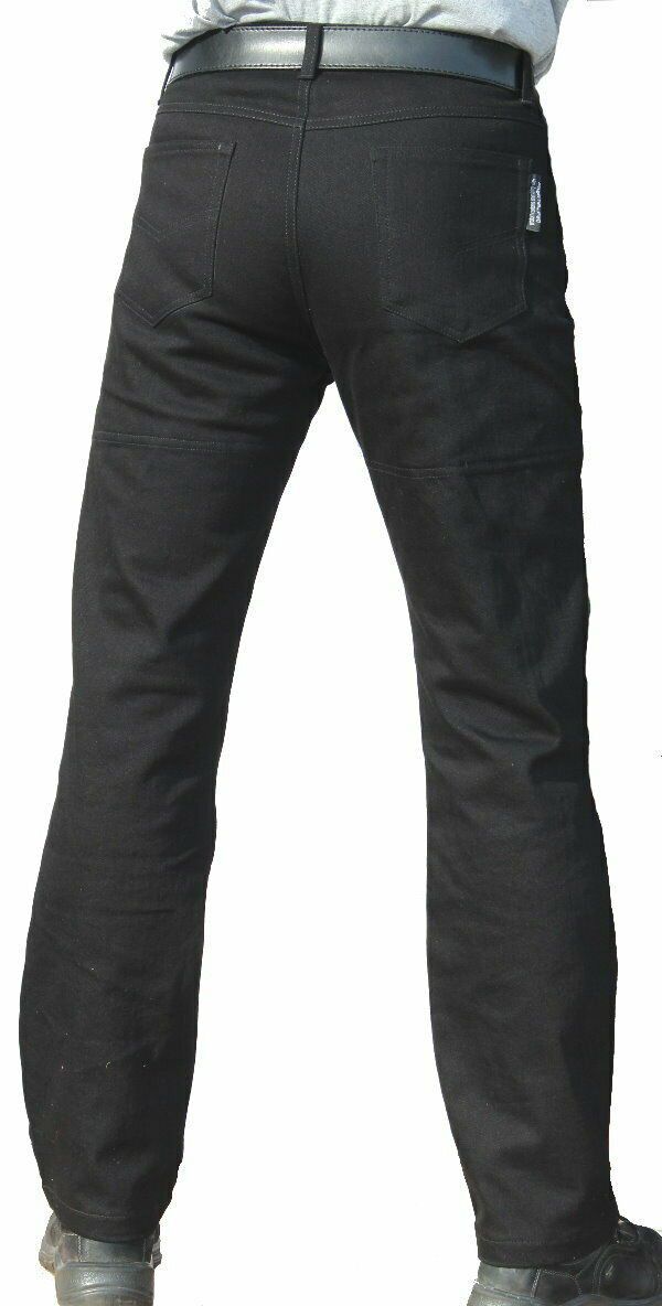 Schwarze Motorradjeans - Kevlarjeans! Motorradhose, Kevlarjeans, schwarz! - perfekte Paßform durch Stretch-Denim - 4 Außentaschen - Protektorentaschen (Knie und Hüfte) - Kevlareinsatz